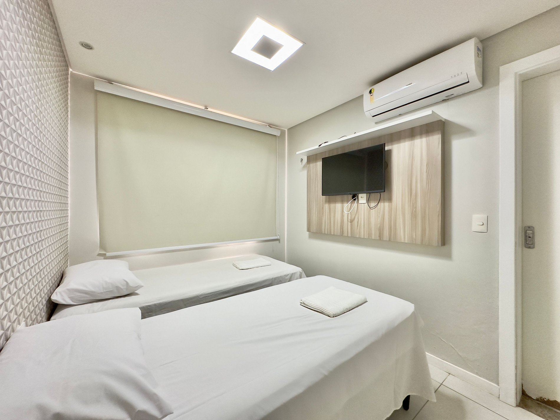 - Terceira Suíte: Duas camas de solteiro, ar-condicionado e TV