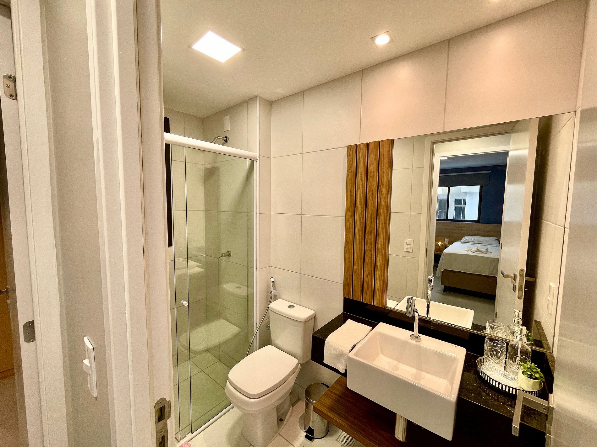 > Suíte com cama Queen + Ar Condicionado + Espaço para Notebook + + TV Smart grande
