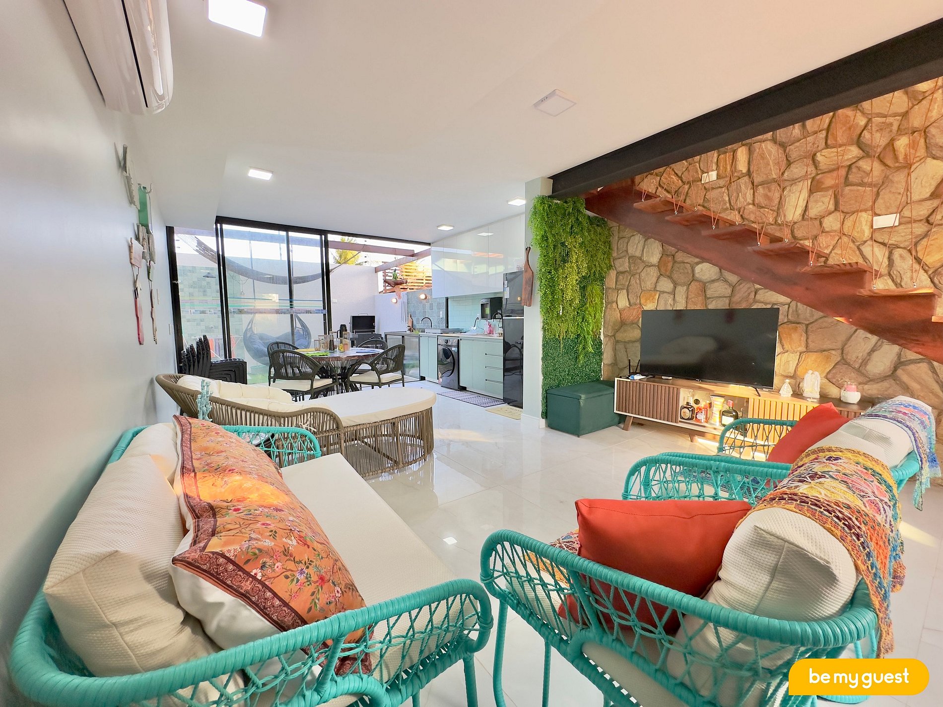 - Sala de estar climatizada e decorada, com TV Smart moderna