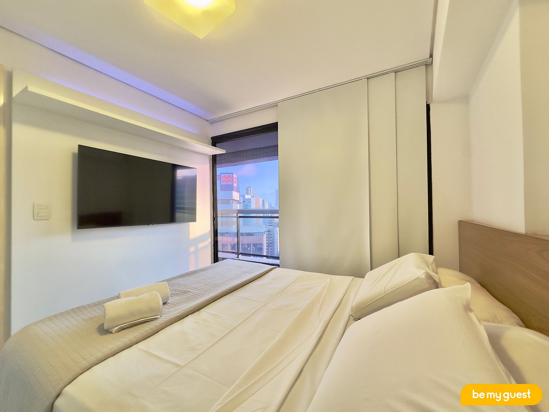 - Suíte com cama de casal, TV Smart e ar-condicionado