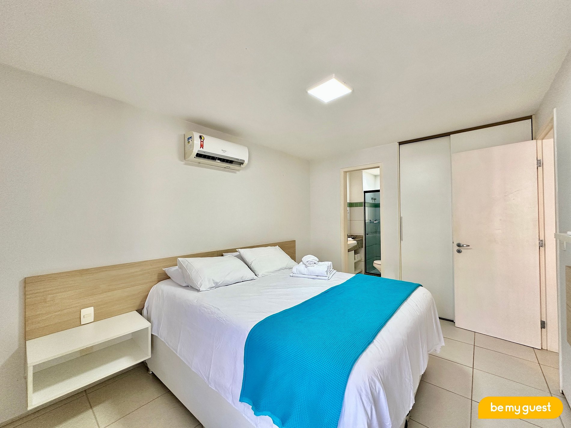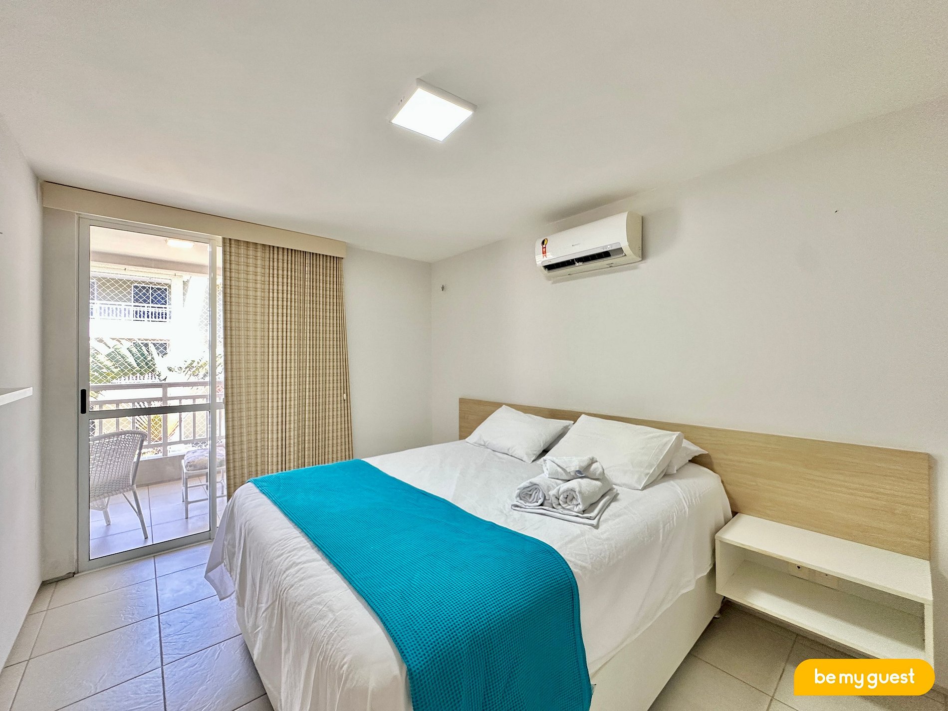 - Suíte com cama queen, ar-condicionado e acesso direto à varanda