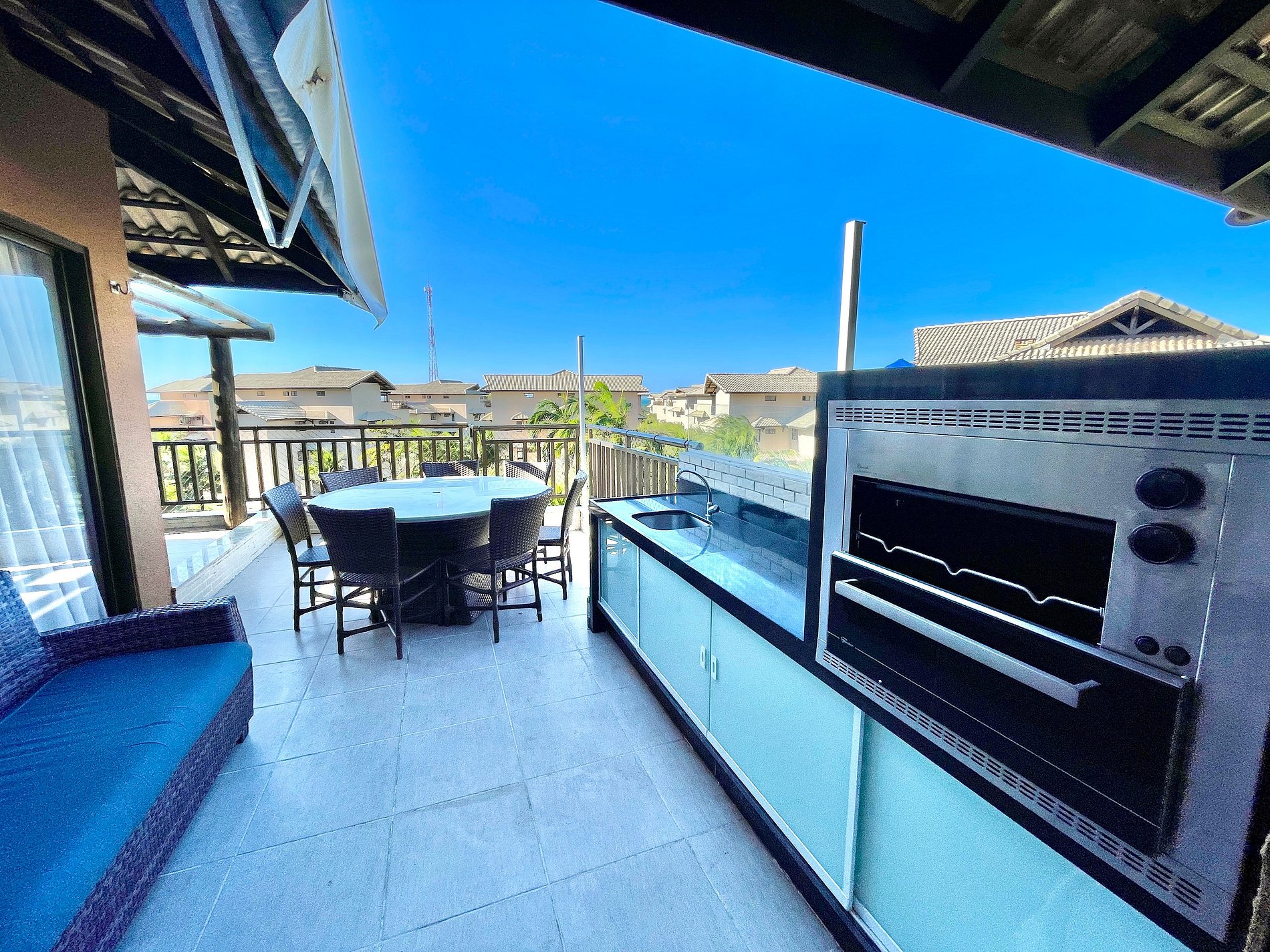 > Amplo apartamento duplex com churrasqueira e mesa para 8 pessoas e vista para o mar na varanda