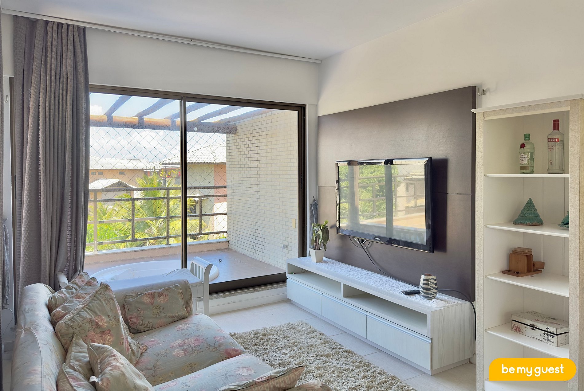 Esta cobertura duplex foi preparada para oferecer uma experiência confortável e agradável, com ambientes bem distribuídos, decoração acolhedora e uma varanda perfeita para momentos de lazer.