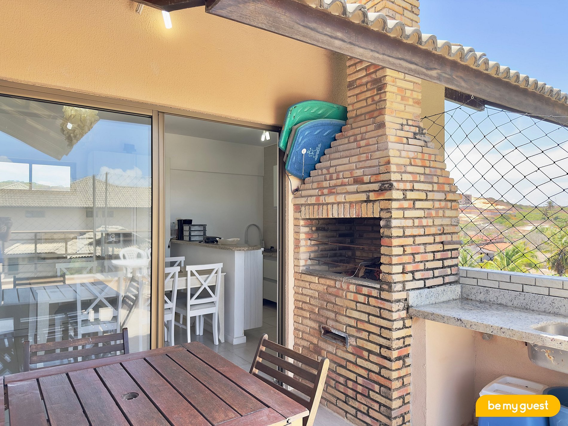 - Varanda ampla com banheira, churrasqueira e mesas, além de uma bela vista para o mar