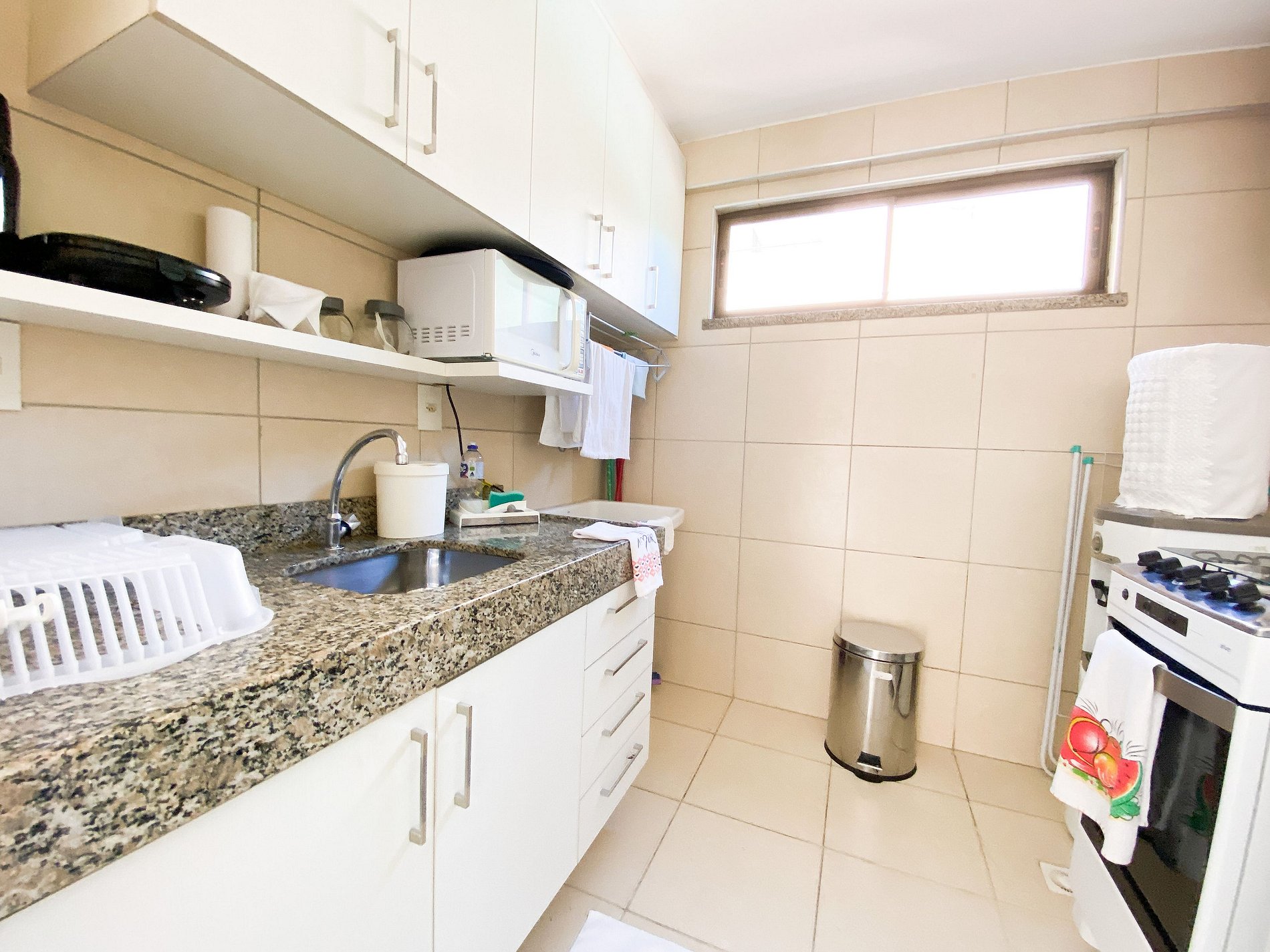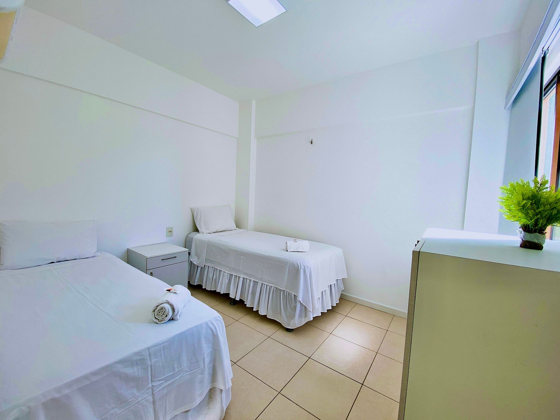 O apartamento tem uma suíte com cama de casal e um quarto com duas camas de solteiro. Uma sala espaçosa com televisão e sofá, uma cozinha super equipada e uma varanda bem ampla para aproveitar com os amigos e a família.