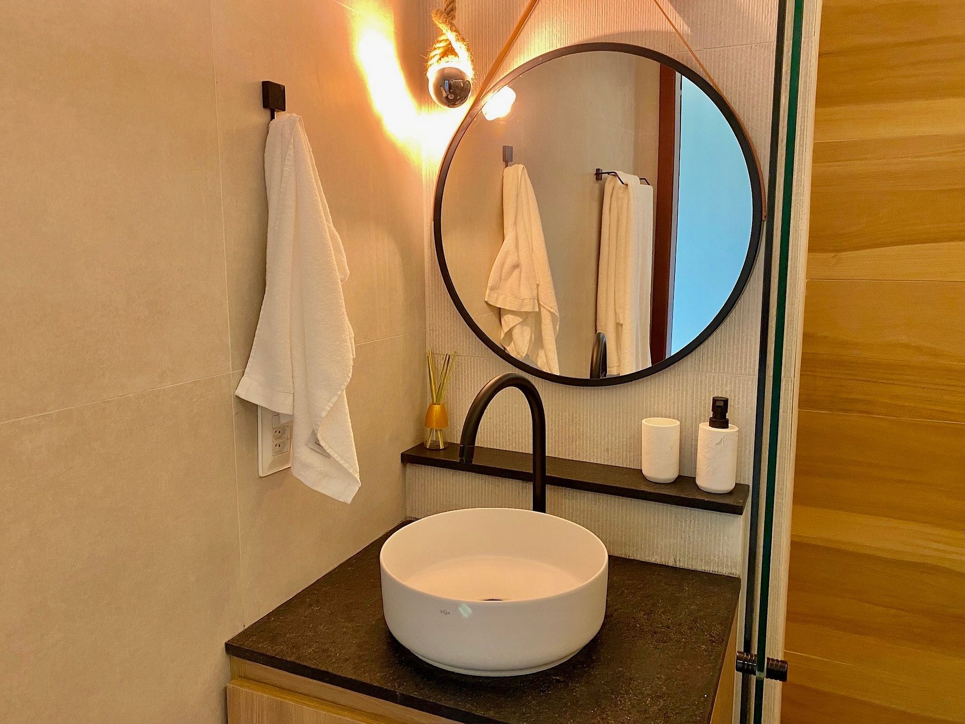 - Suíte com Cama Queen, ar condicionado novo e um belo banheiro com água aquecida.