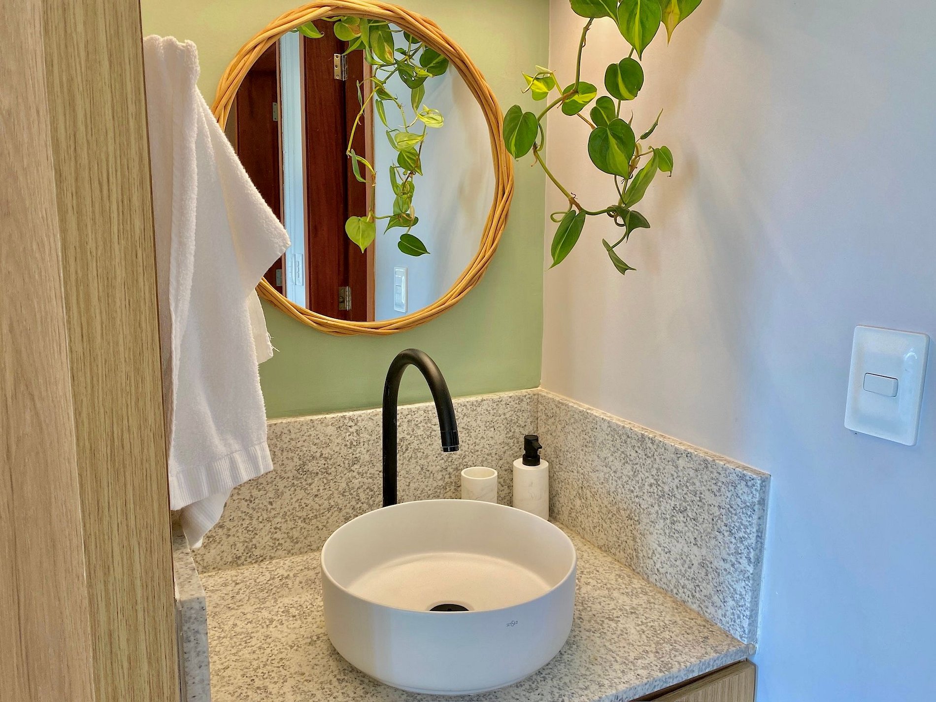 - Suíte com Cama Queen, ar condicionado novo e um belo banheiro com água aquecida.