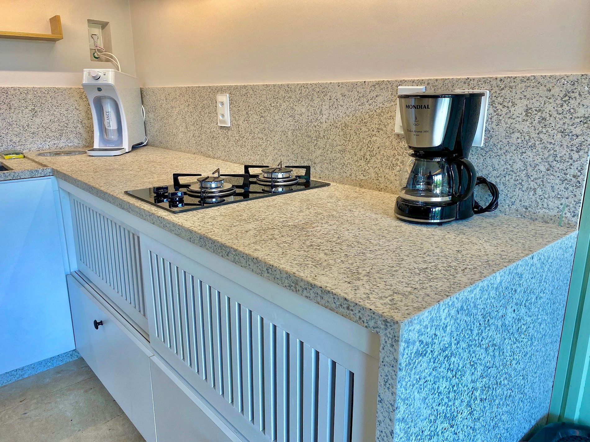 - Cozinha moderna conectada a sala de estar e com todos os itens essenciais