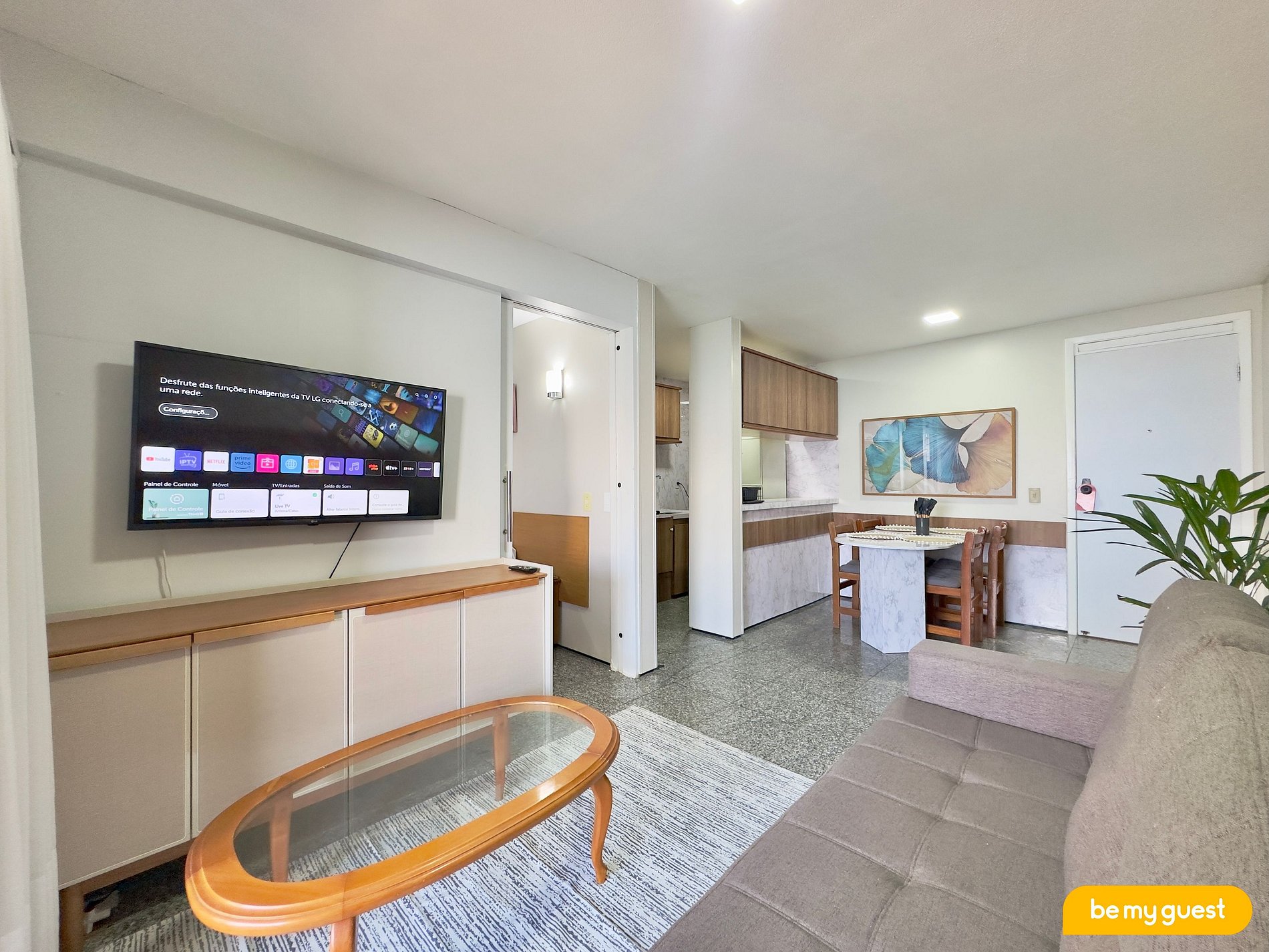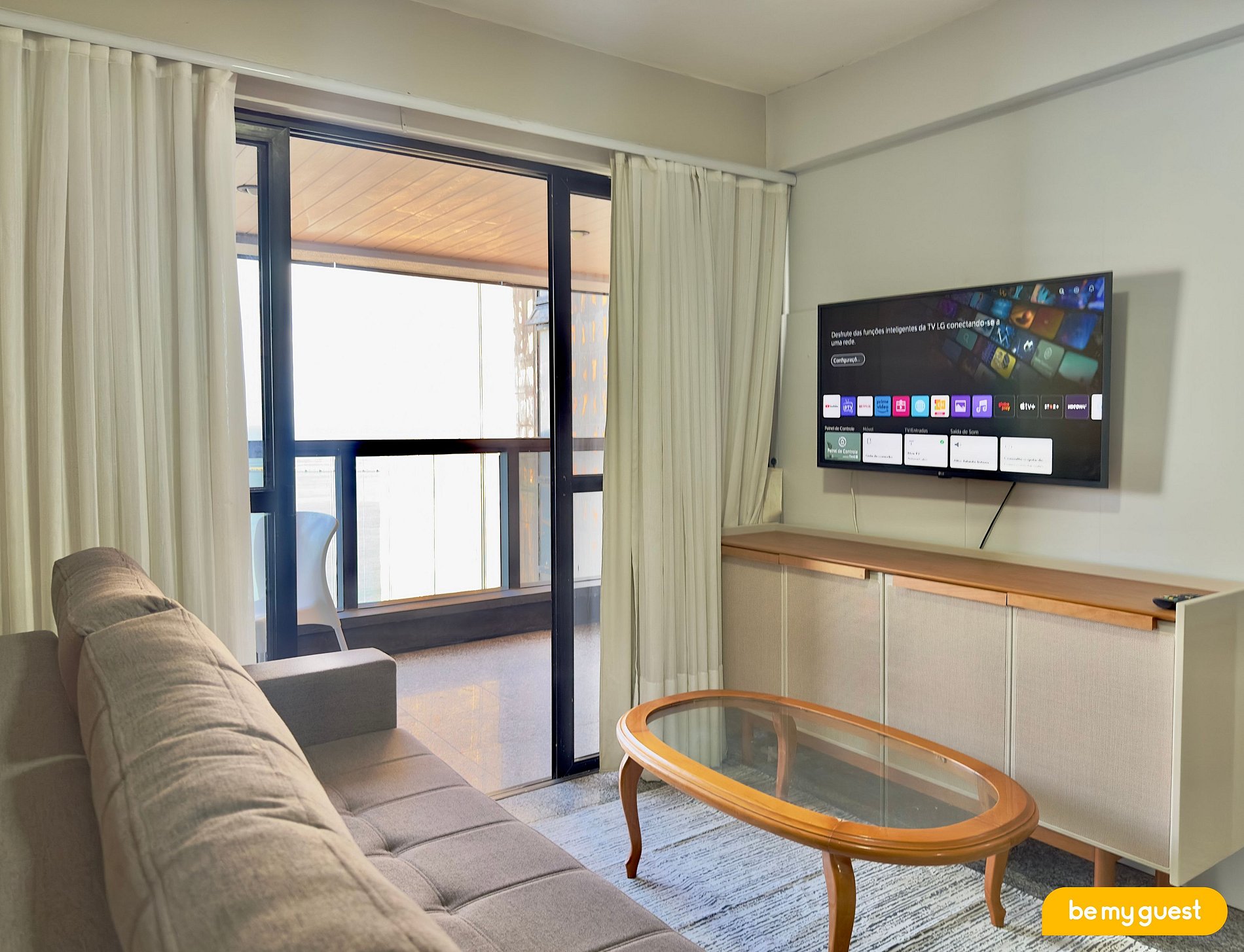 - Sala de estar com sofá-cama casal e TV Smart