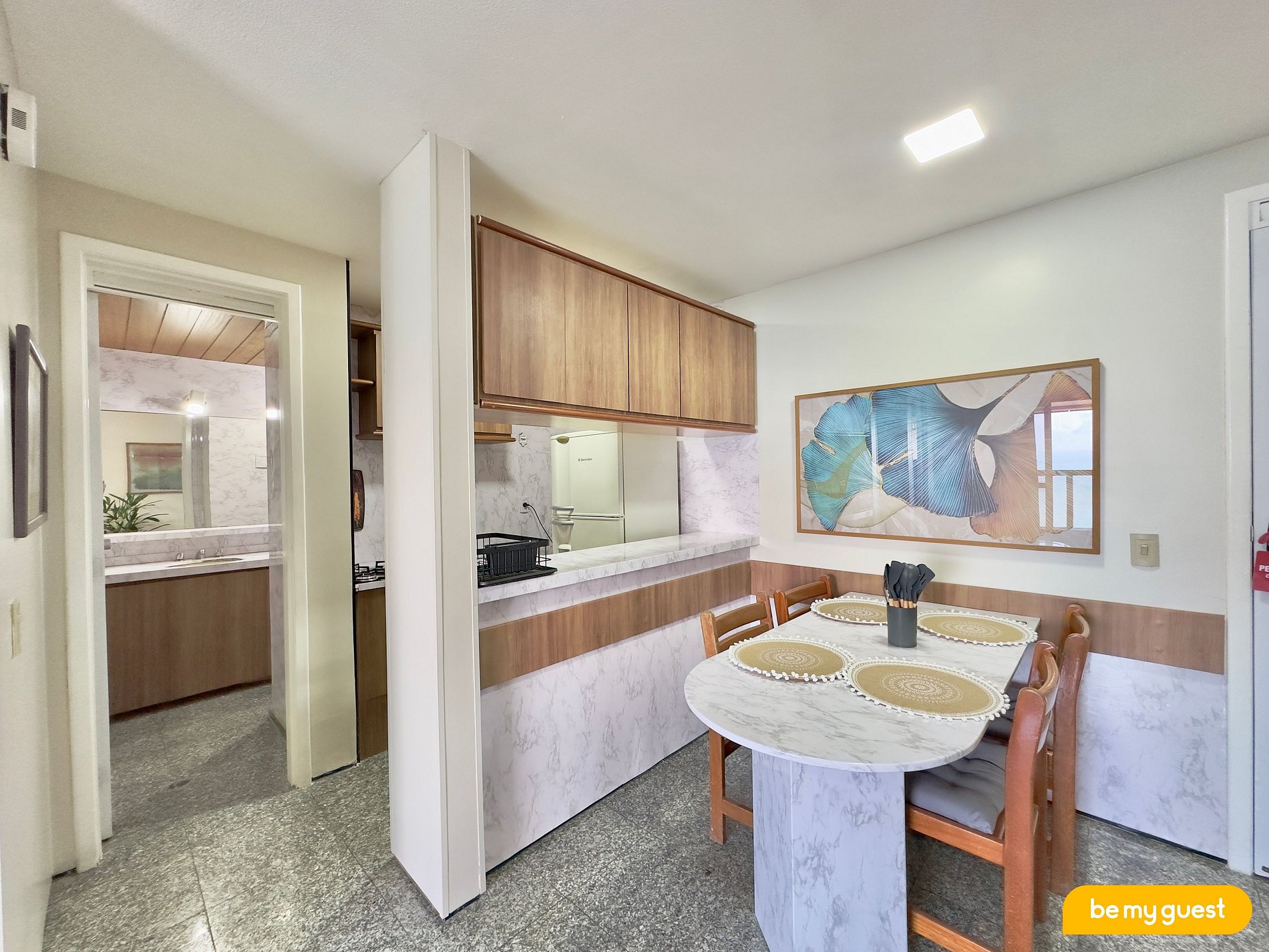 A acomodação foi cuidadosamente reformada para oferecer uma estadia confortável e funcional, perfeita para quem está a lazer ou a trabalho e deseja estar próximo ao mar.