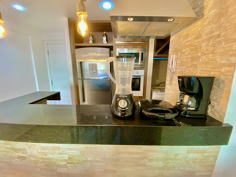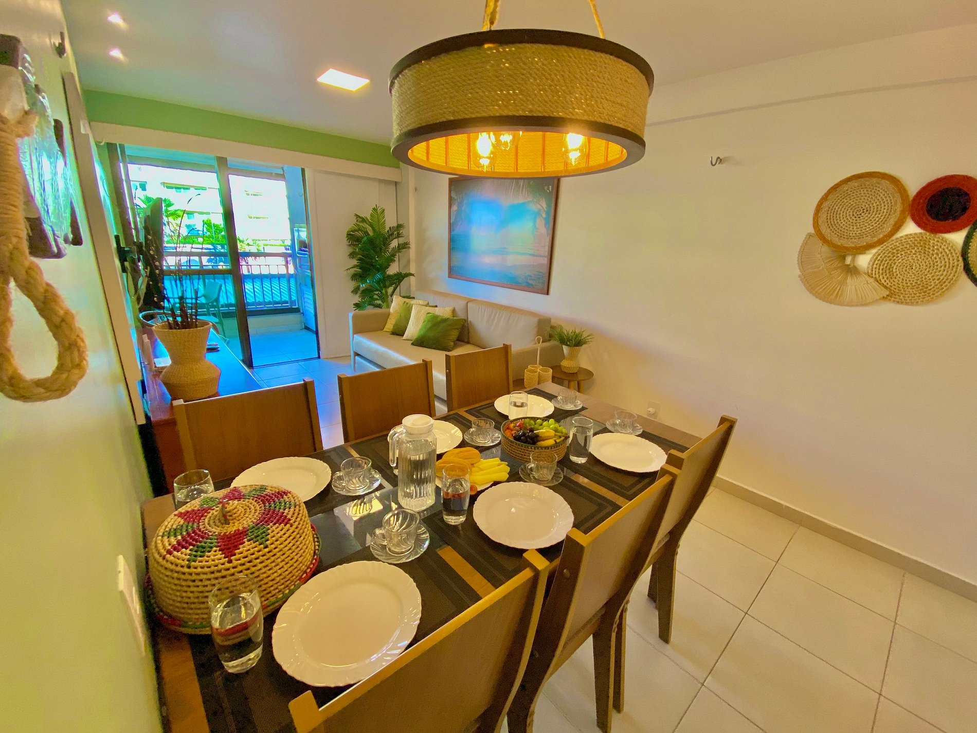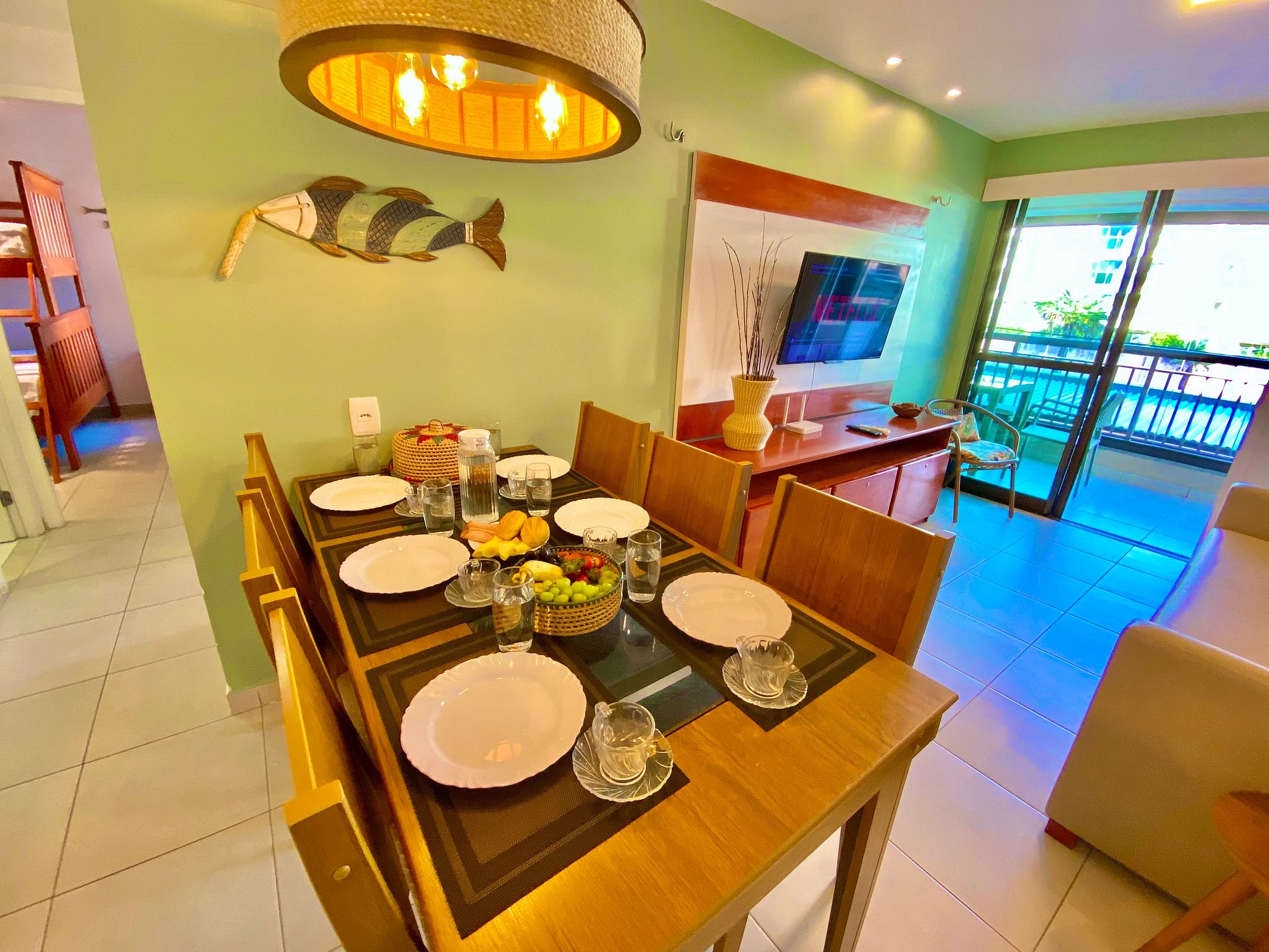 O apartamento possui uma estrutura moderna e completa com capacidade confortável para 7 pessoas.