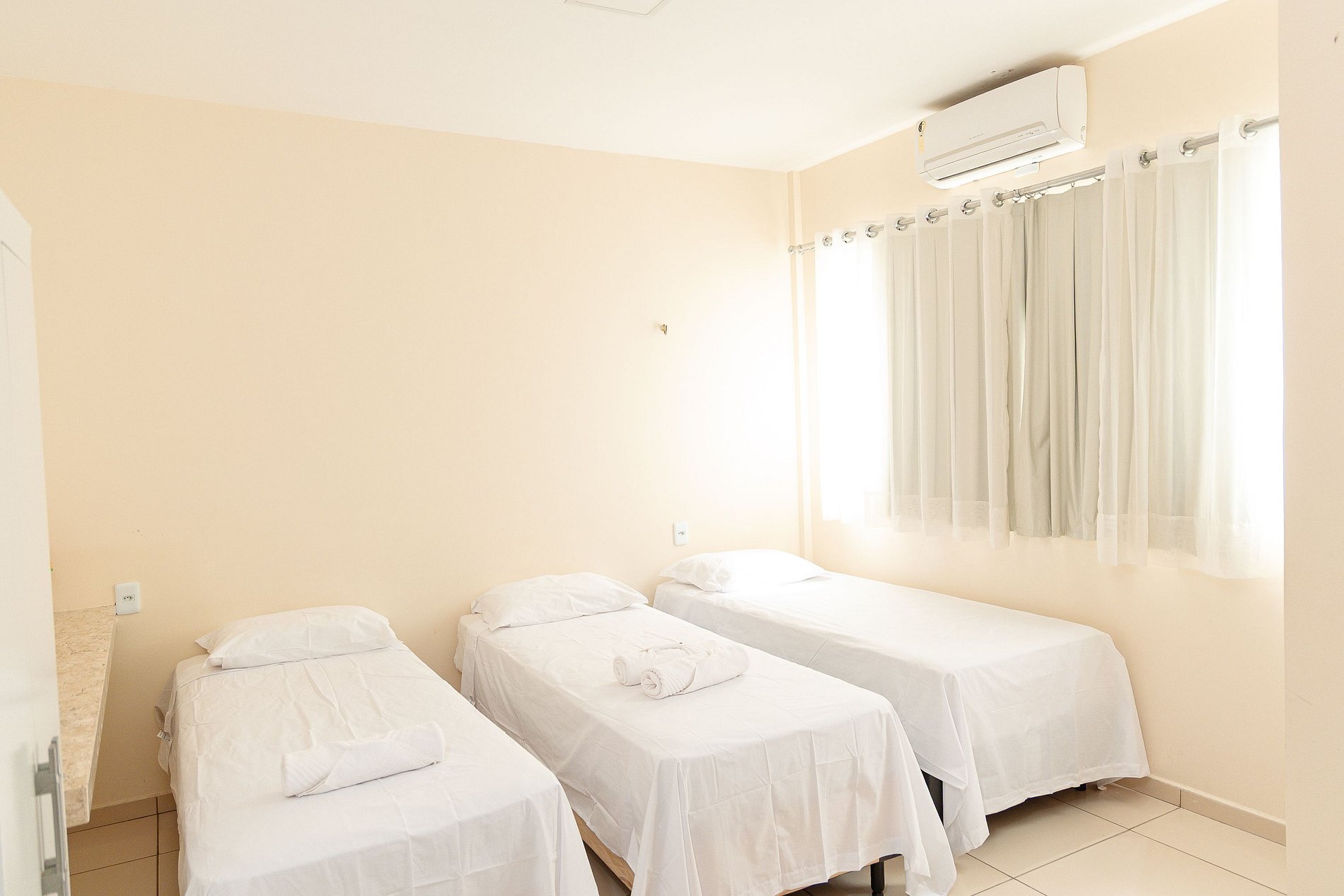 Acomodação versátil e aconchegante, perfeita para casais ou pequenas famílias que buscam conforto e praticidade em um ambiente climatizado.