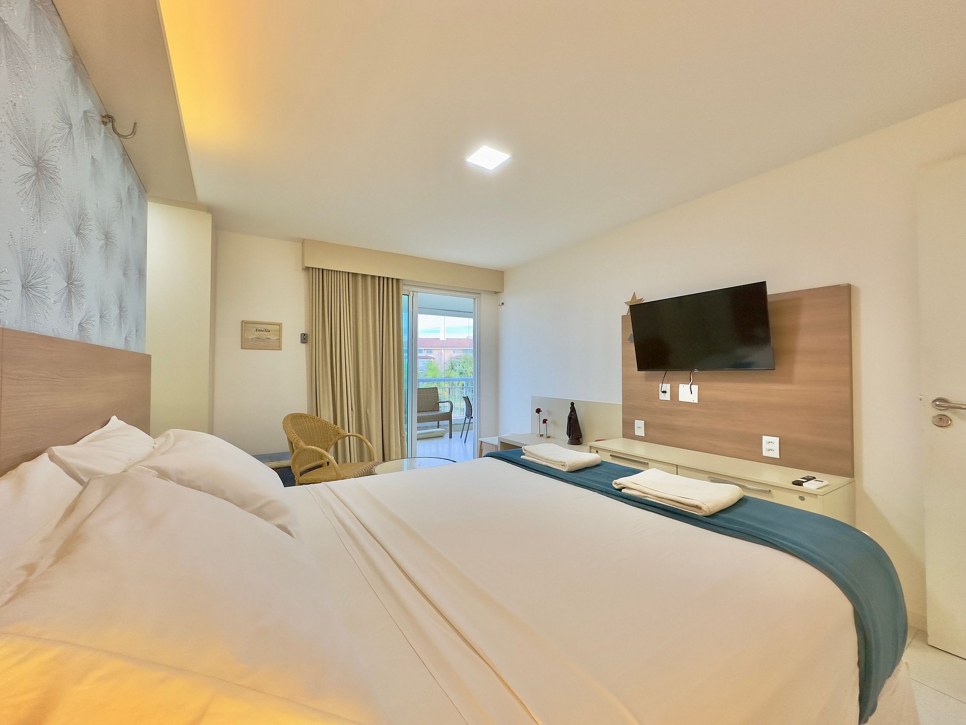 1 Suite com 1x Cama Queen + TV Smart e é conectada a varanda