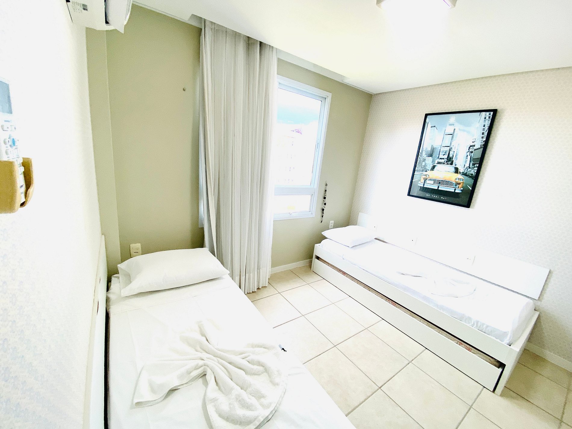 > Quarto Quadruplo com 4 Camas de Solteiro + Ar Condicionado