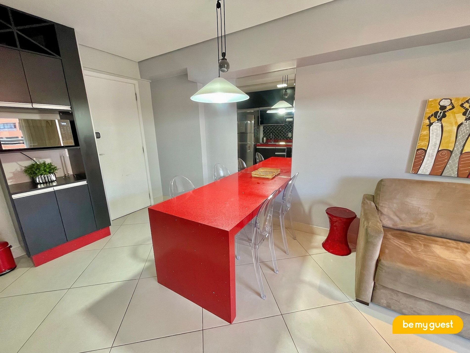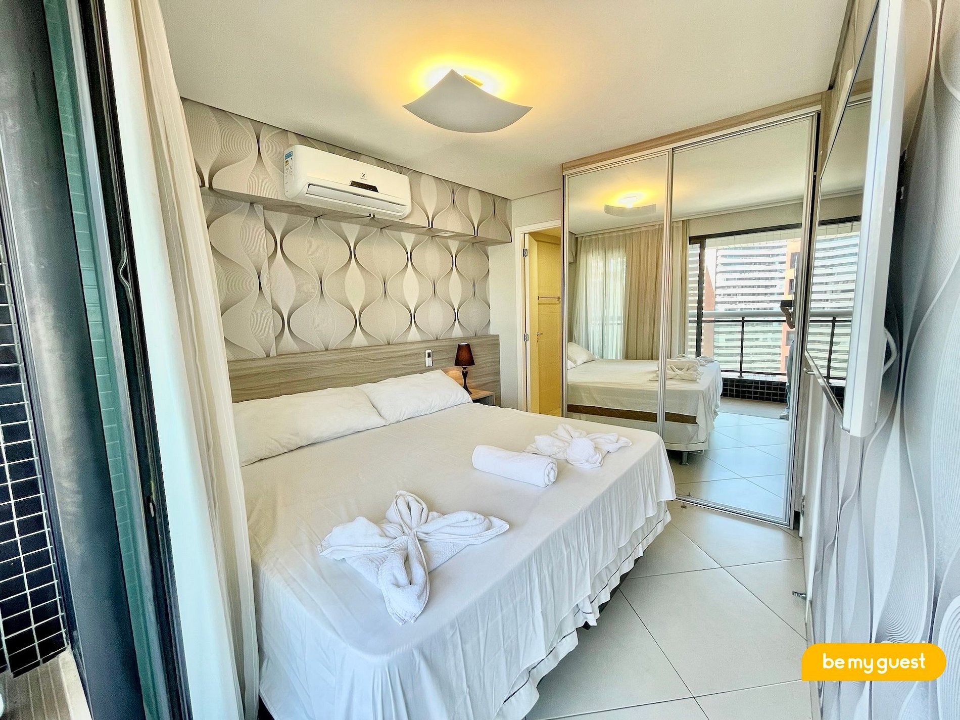 O apartamento é moderno e ideal para até duas pessoas se acomodarem com total conforto. Essa acomodação é totalmente climatizada e conta com: