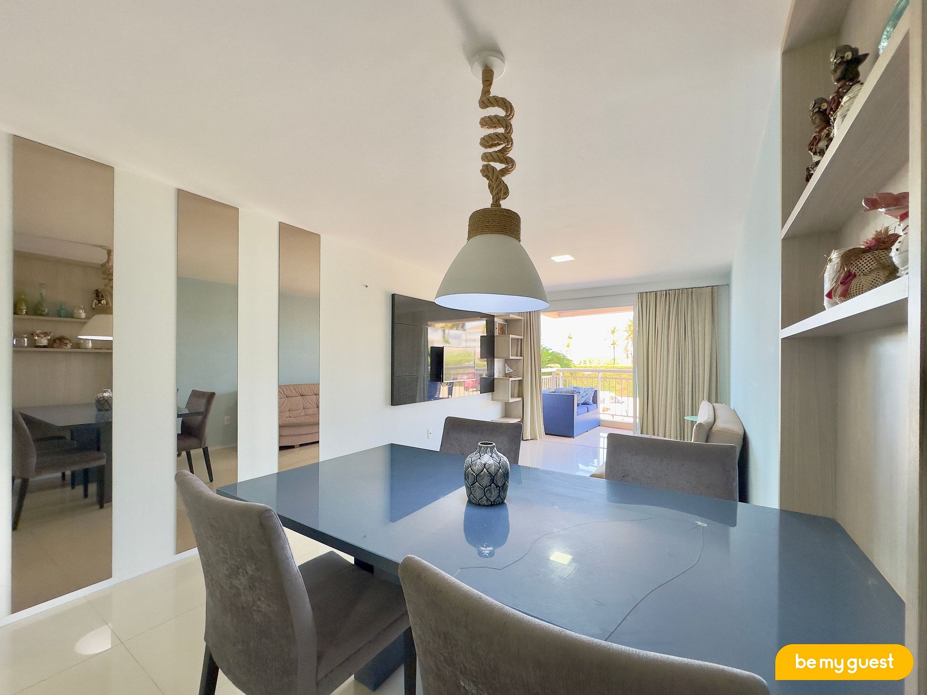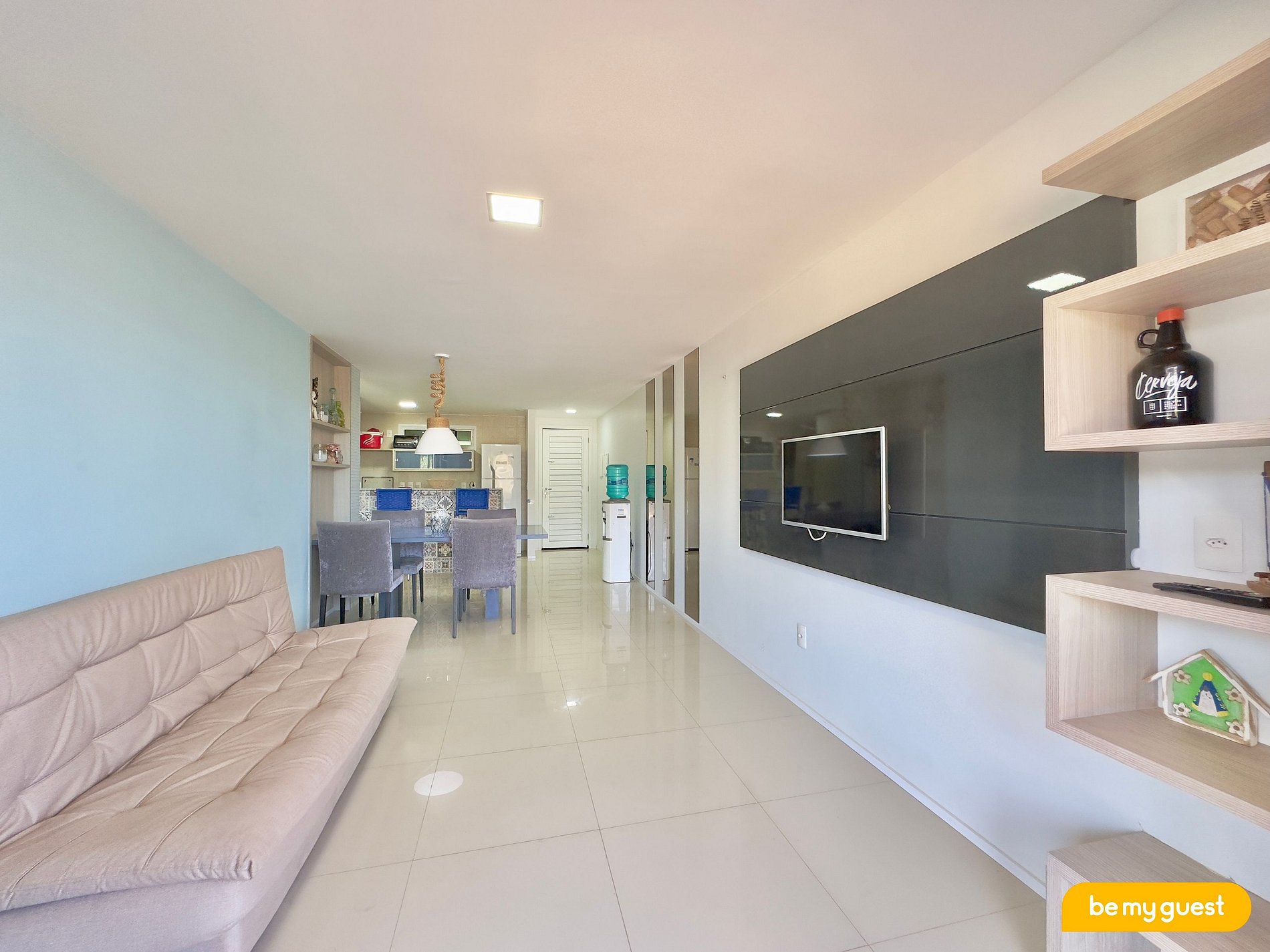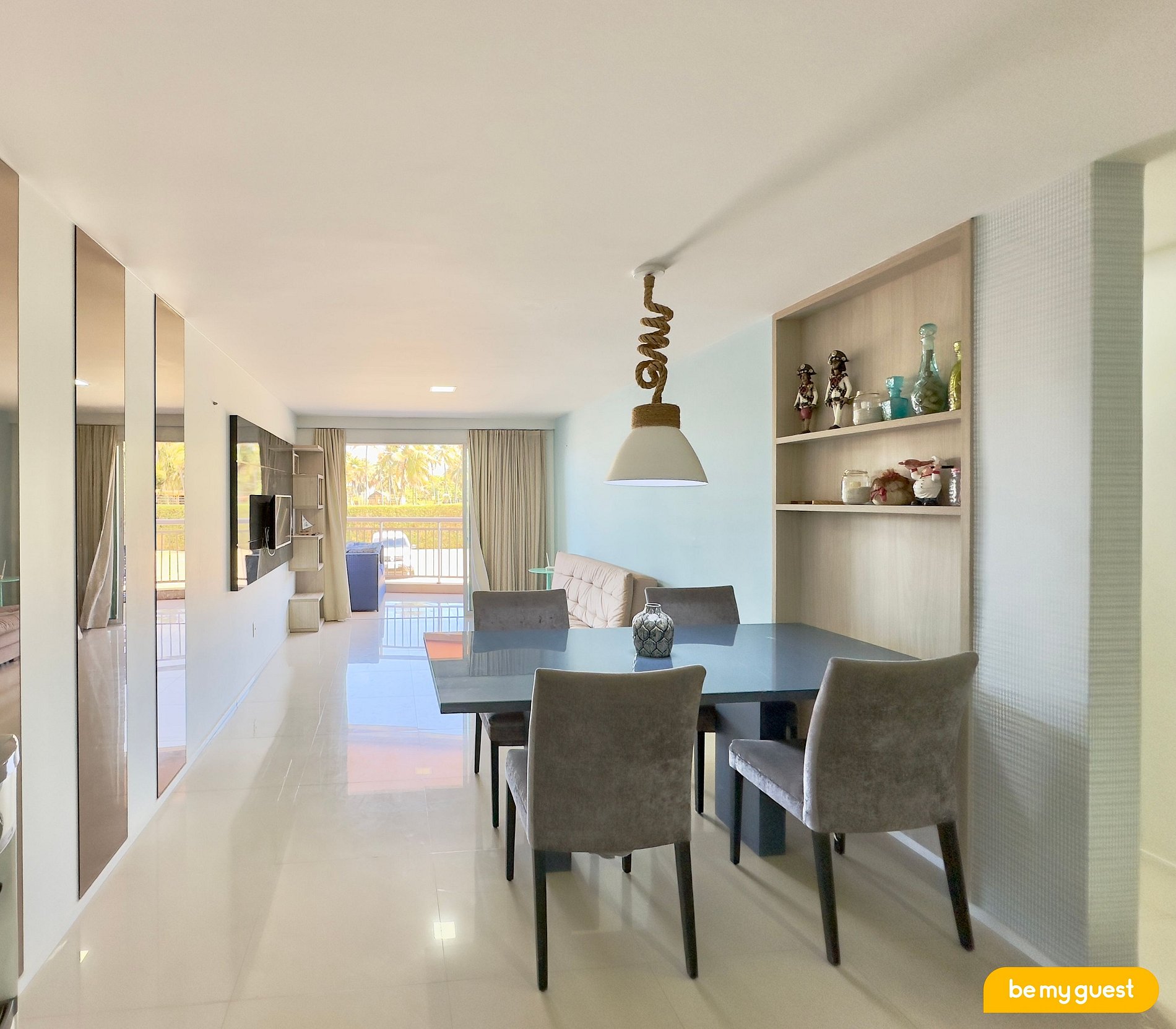 O apartamento conta com 3 quartos, sendo 2 suítes e com capacidade para até 8 pessoas com conforto.