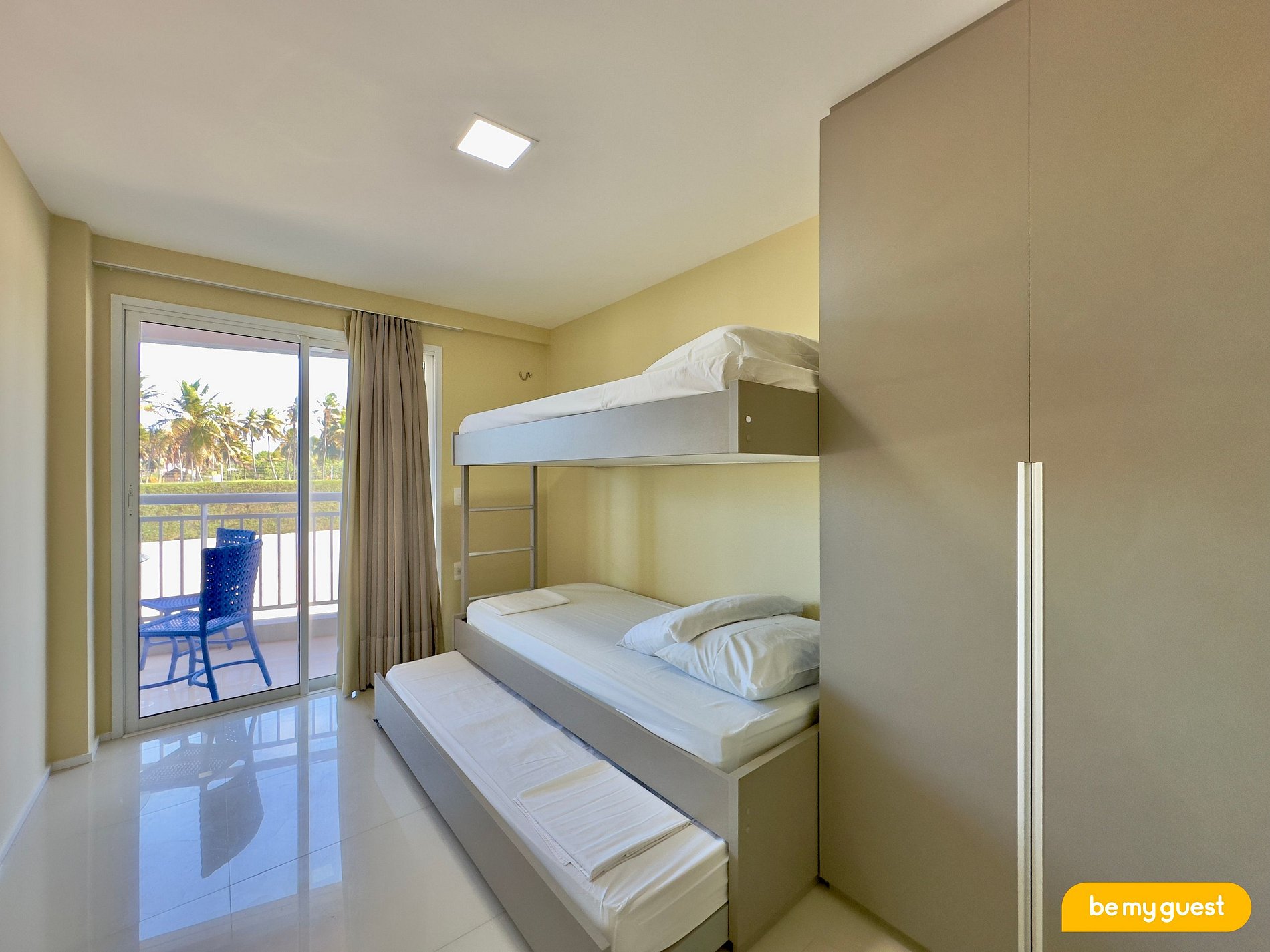 > Suíte com 2 camas em beliche e 1 cama de solteiro e ar condicionado
