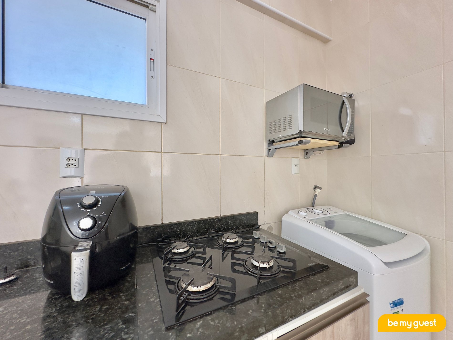 O apartamento comporta até 3 pessoas com total conforto! Com um quarto com ar-condicionado, uma cozinha compacta e uma sala de estar super confortável! Uma varanda térrea bem espaçosa!