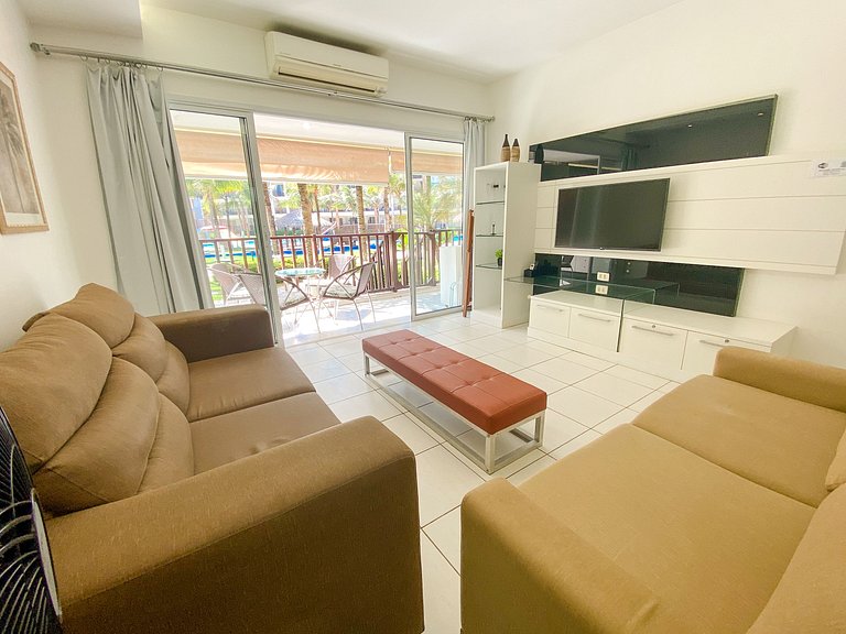 Apartamento de 107m para até 08 pessoas, com espetacular, TÉRREO, FÁCIL ACESSO A ÁREA DE LAZER COM VARANDA CONECTADA E POUCOS METROS DA PISCINA PRINCIPAL,