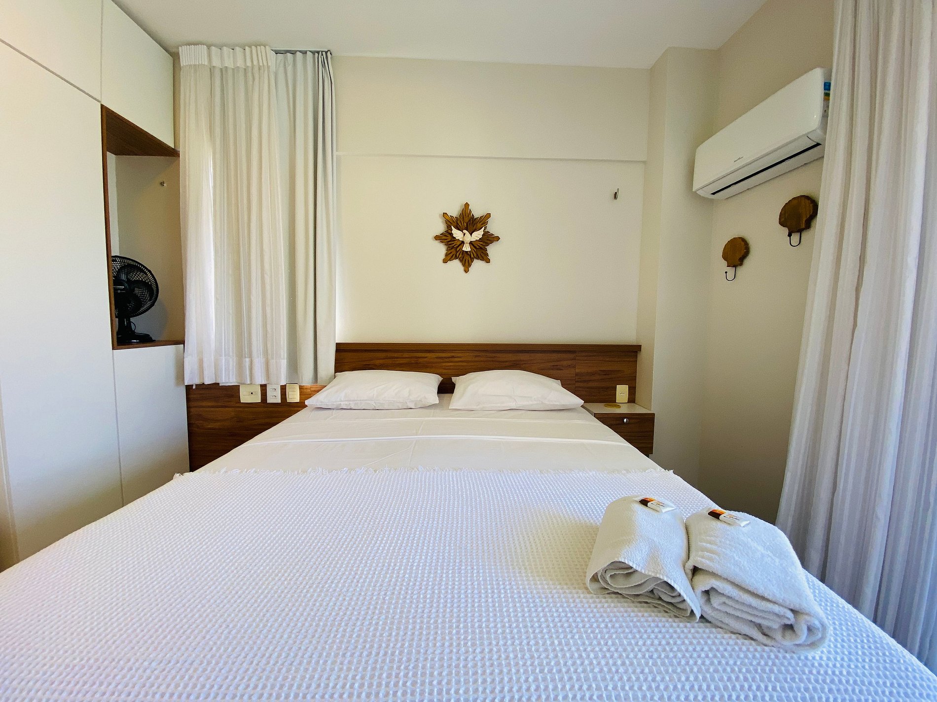 Nossas acomodações contam com roupas de cama, contendo um lençol elástico, um lençol de cobrir e fronhas de acordo com o tamanho da cama. Edredons serão disponibilizados mediante solicitação antecipada.