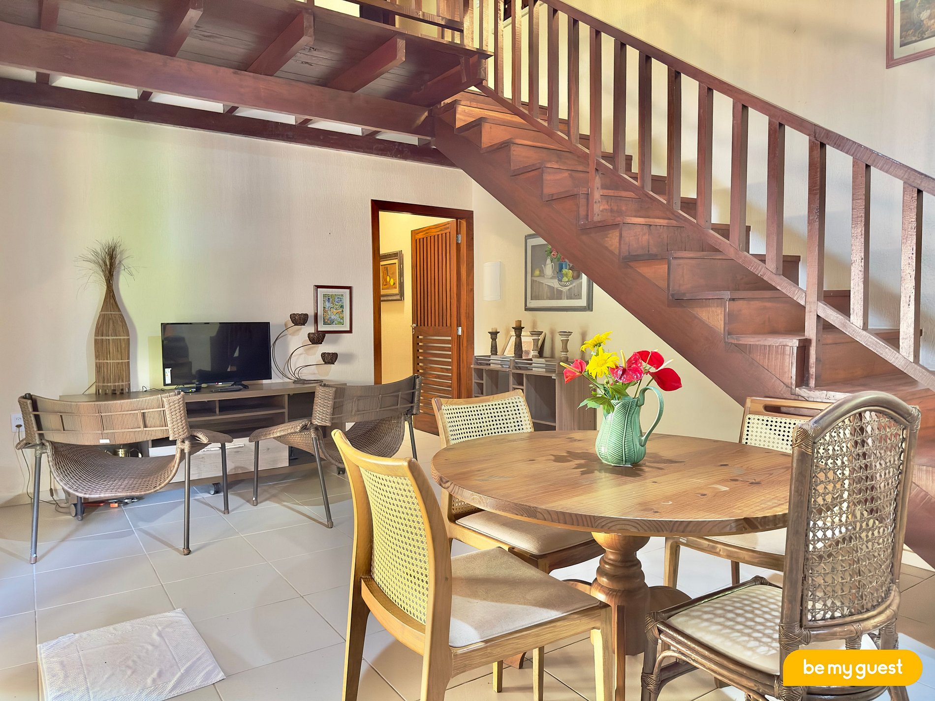 A acomodação fica dentro do condomínio EuroVille em Guaramiranga e possui 3 quartos sendo todos eles suítes. A casa possui 2 andares e possui: