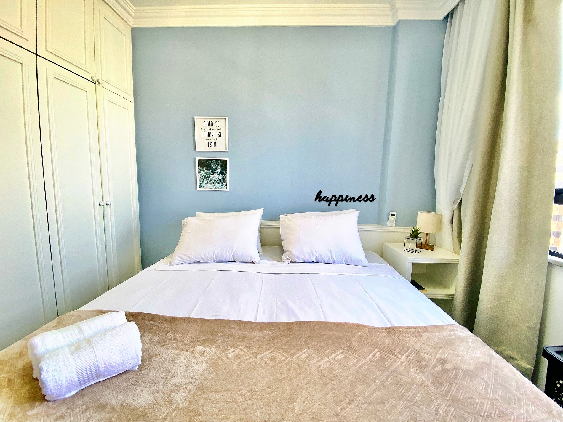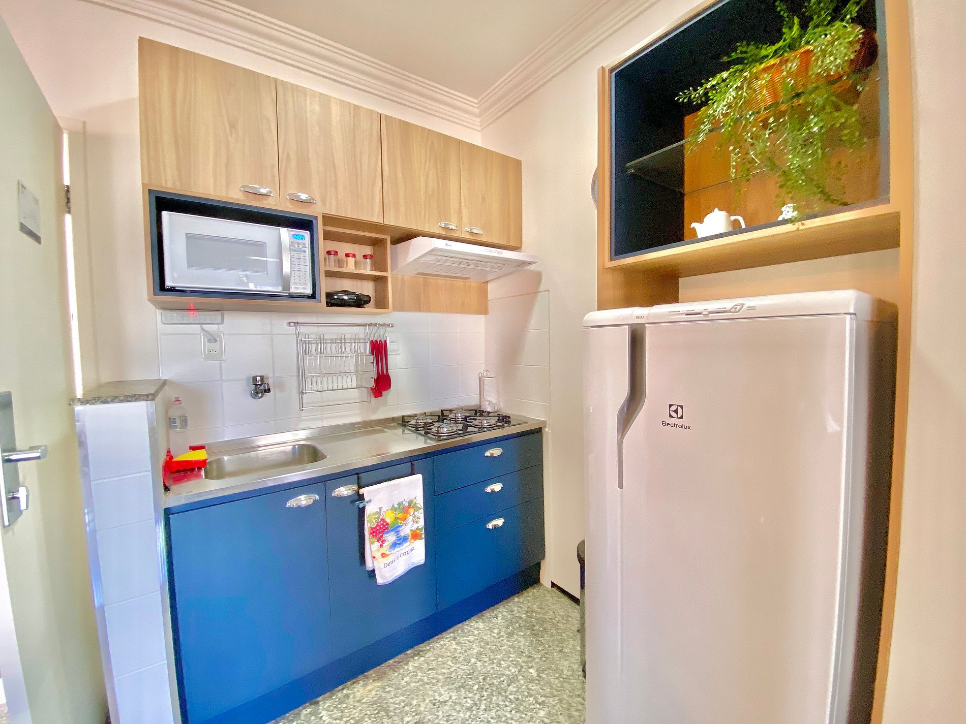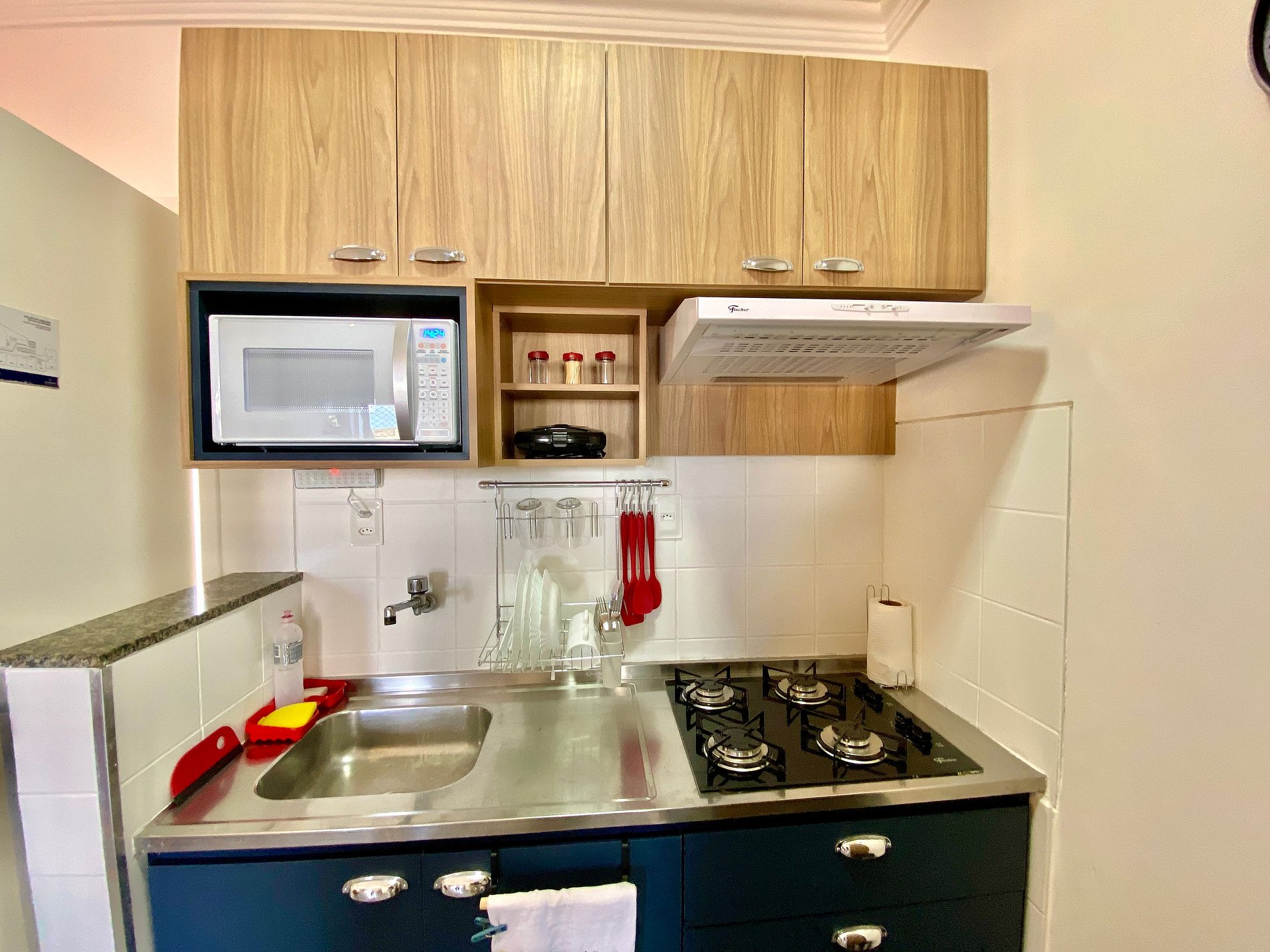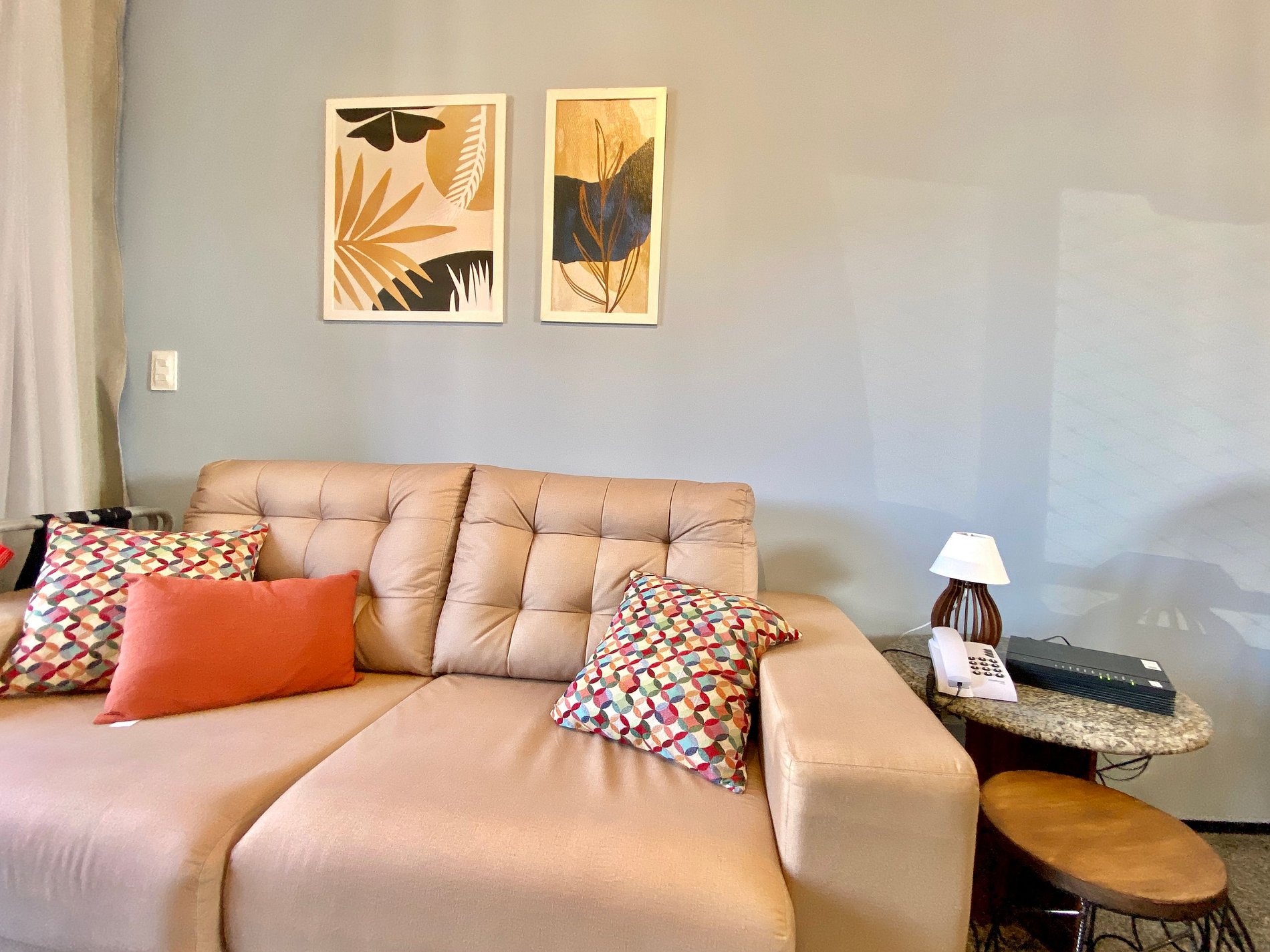 O flat tem uma decoração tão aconchegante que te faz sentir em casa! Com uma varanda ideal para um cafézinho e quarto com cama king size arrumada lençóis de hotel para sua chegada! Sala com sofá cama, cozinha no estilo americano com todos utensílios, produtos de higiene e ar condicionados em todos os cômodos.