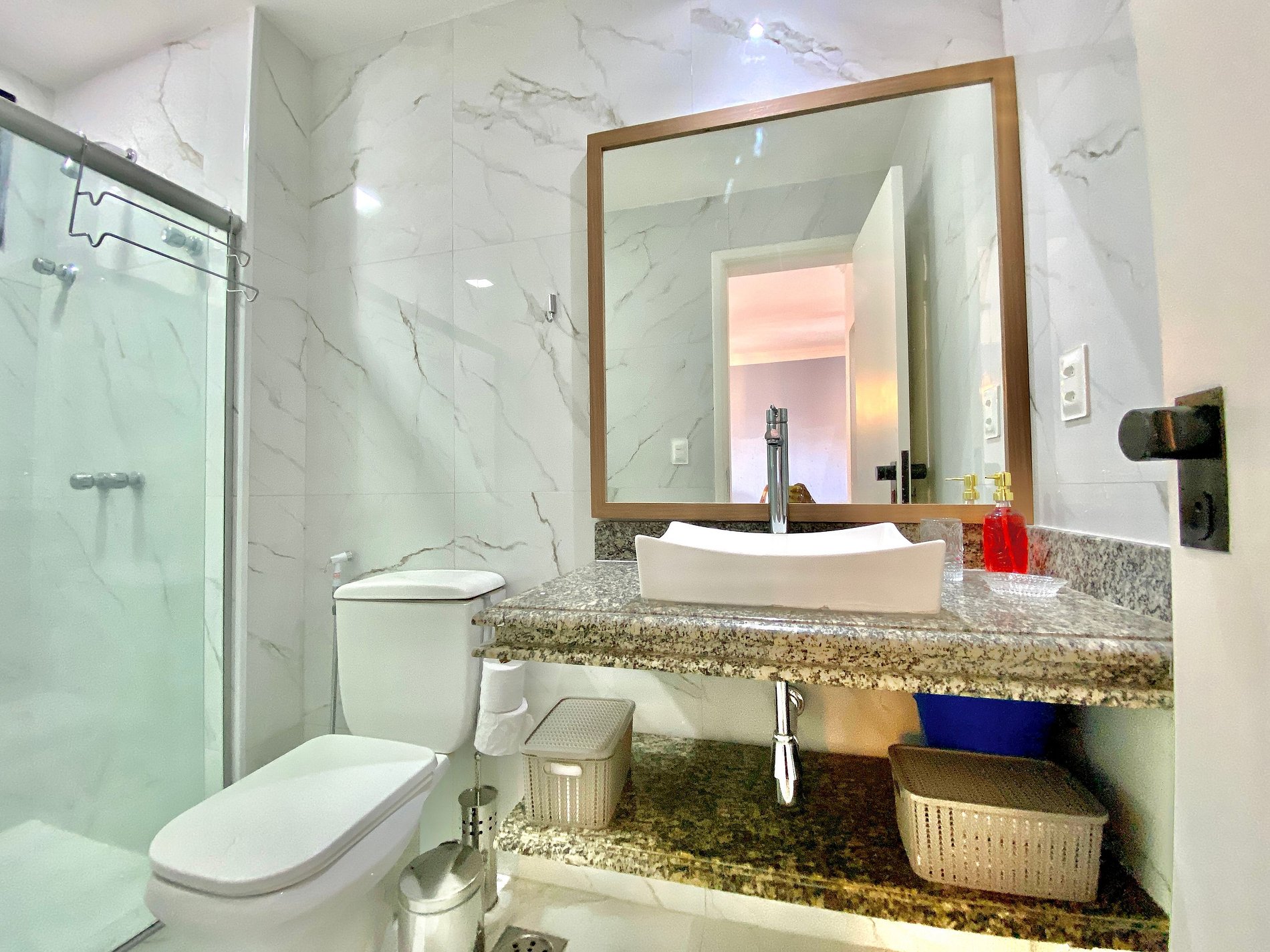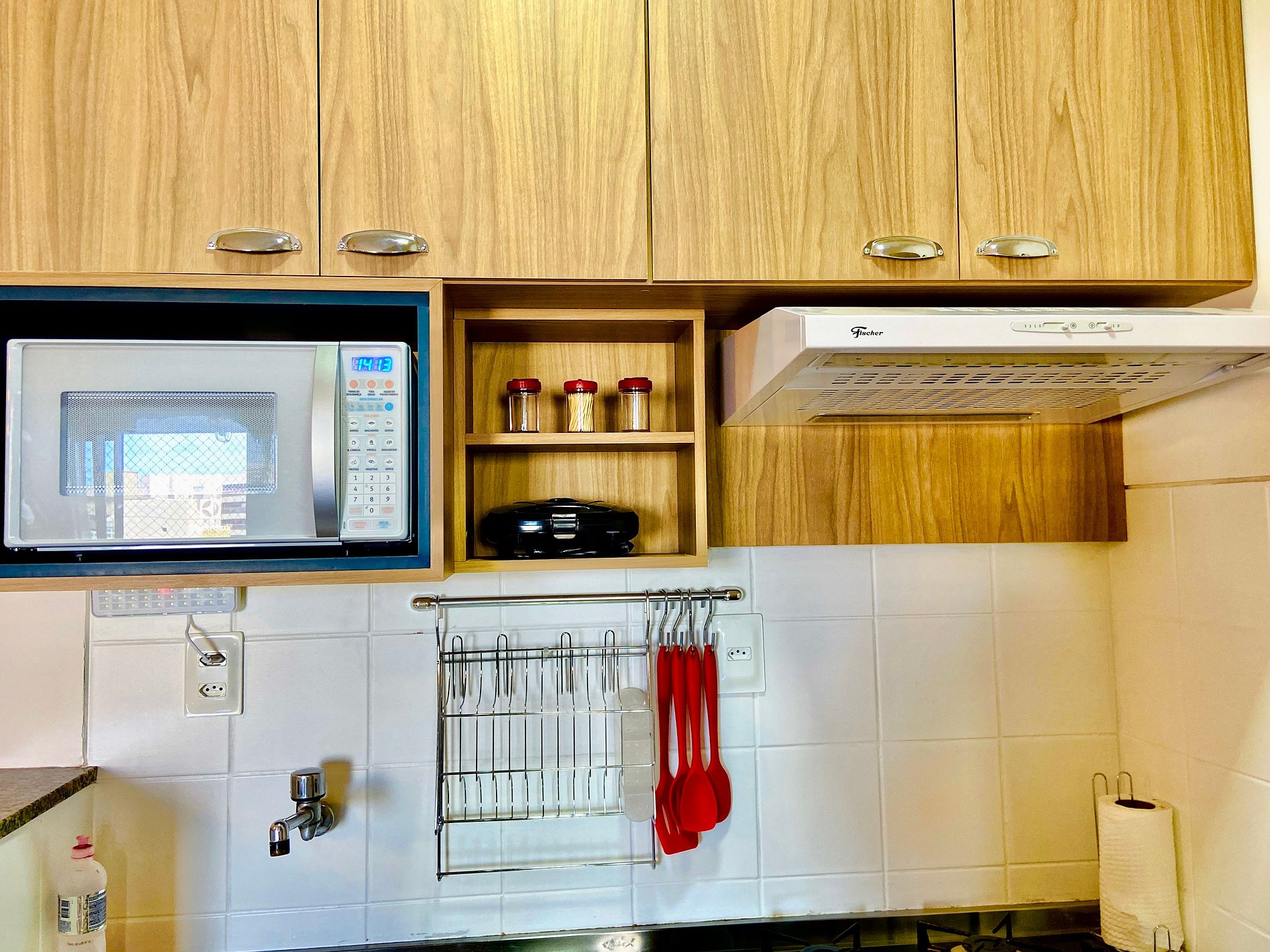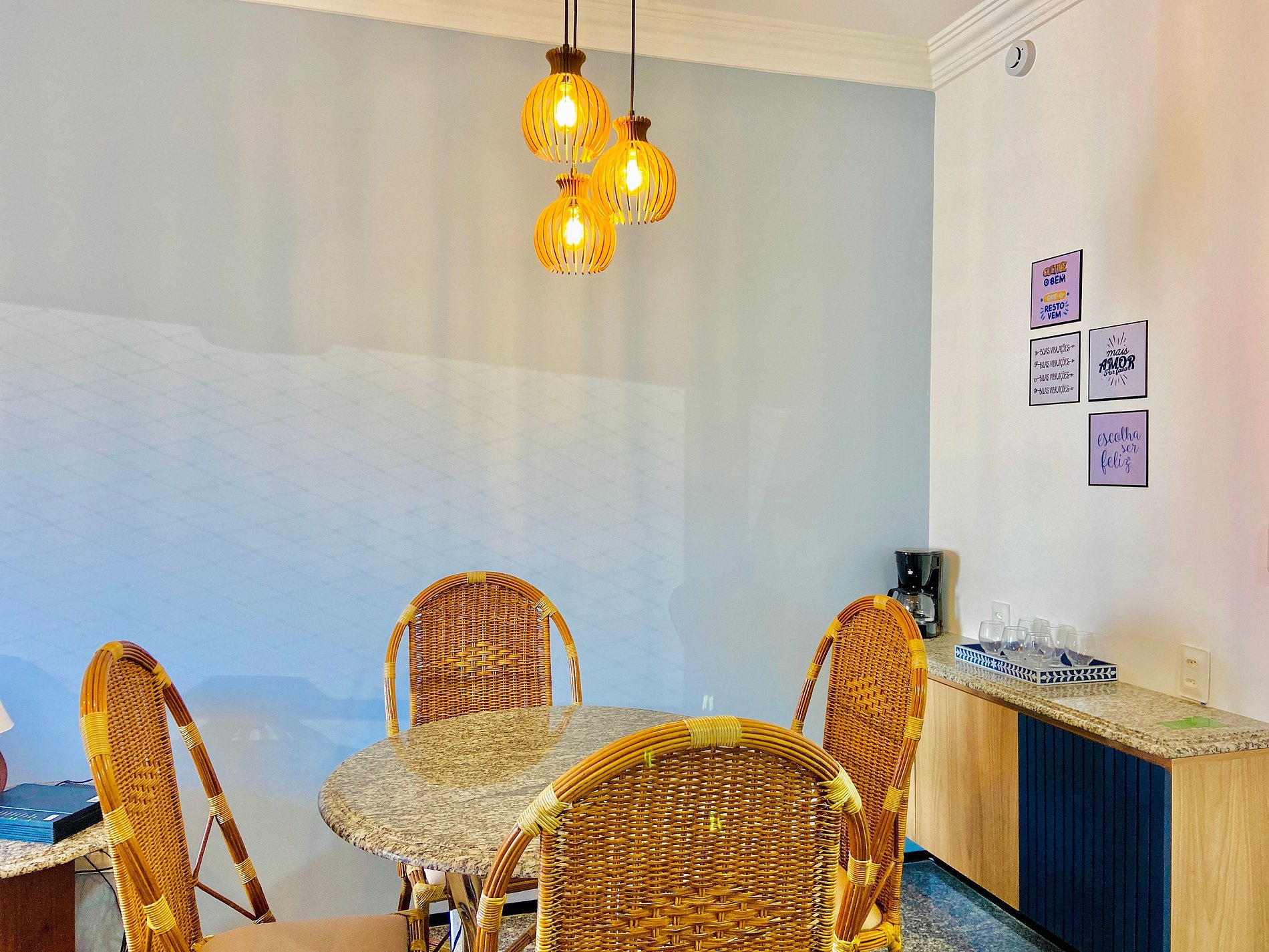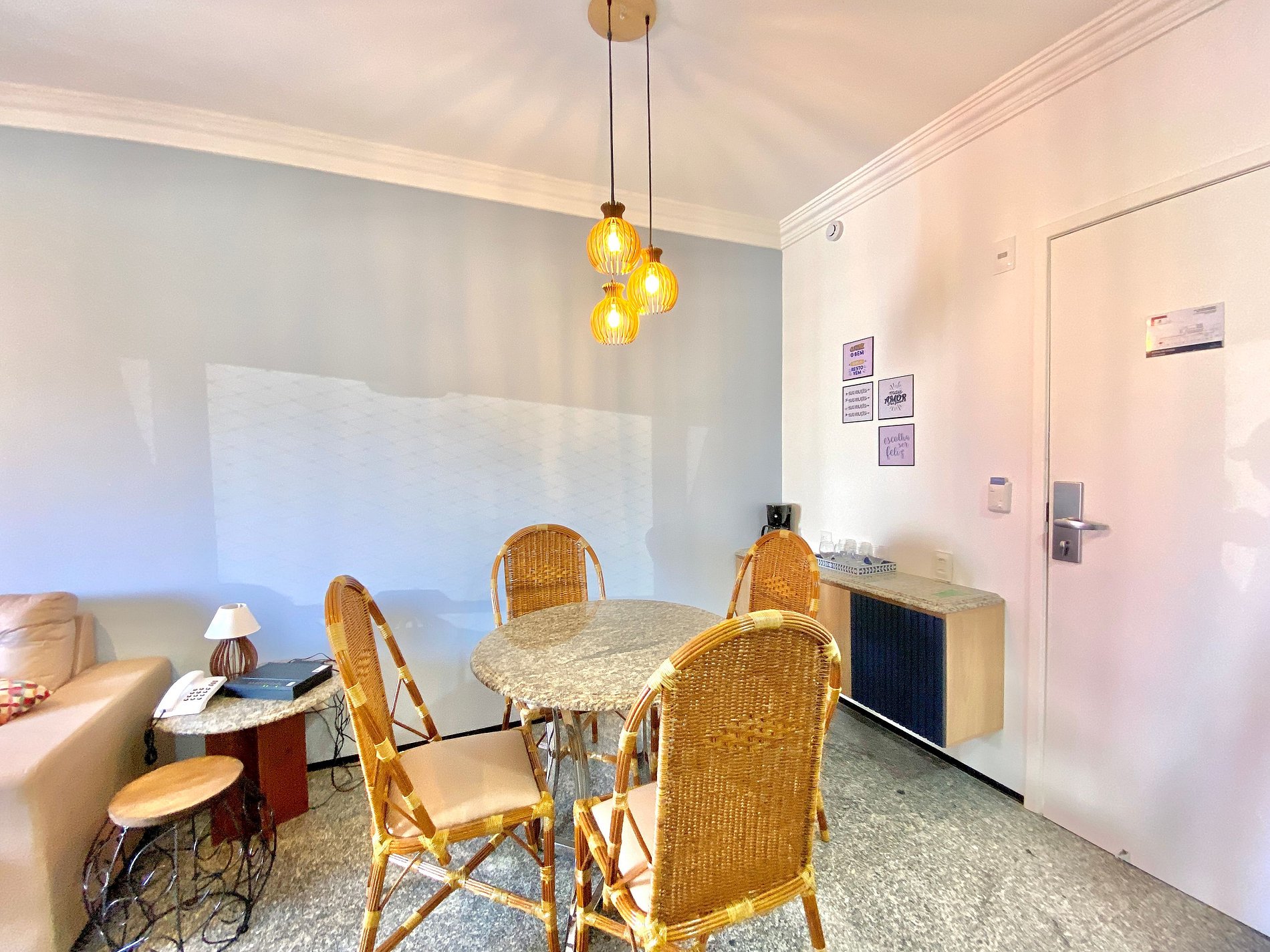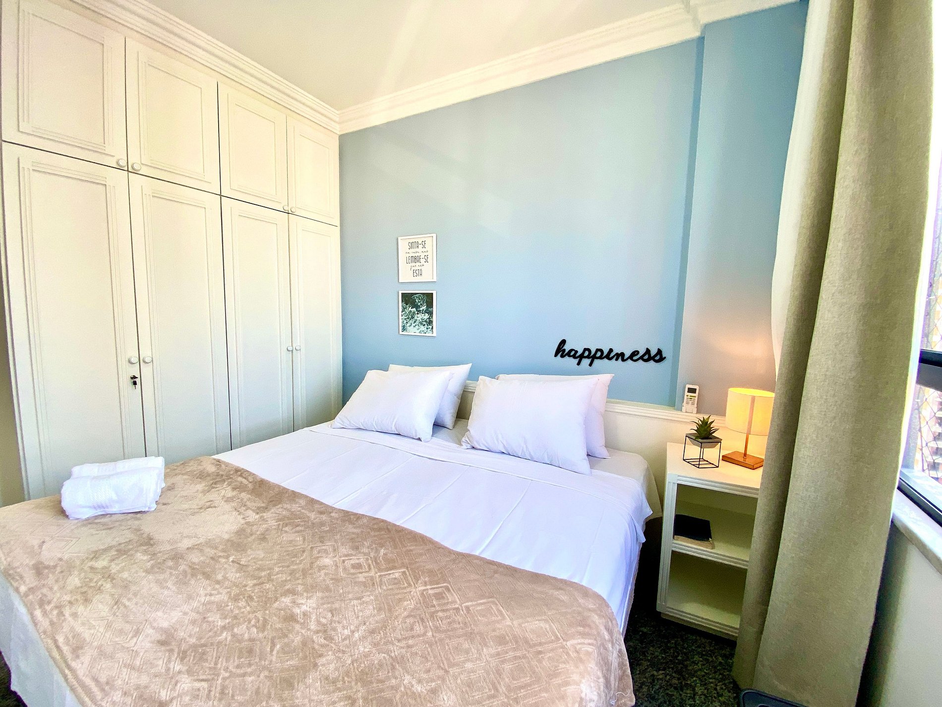 O flat tem uma decoração tão aconchegante que te faz sentir em casa! Com uma varanda ideal para um cafézinho e quarto com cama king size arrumada lençóis de hotel para sua chegada! Sala com sofá cama, cozinha no estilo americano com todos utensílios, produtos de higiene e ar condicionados em todos os cômodos.