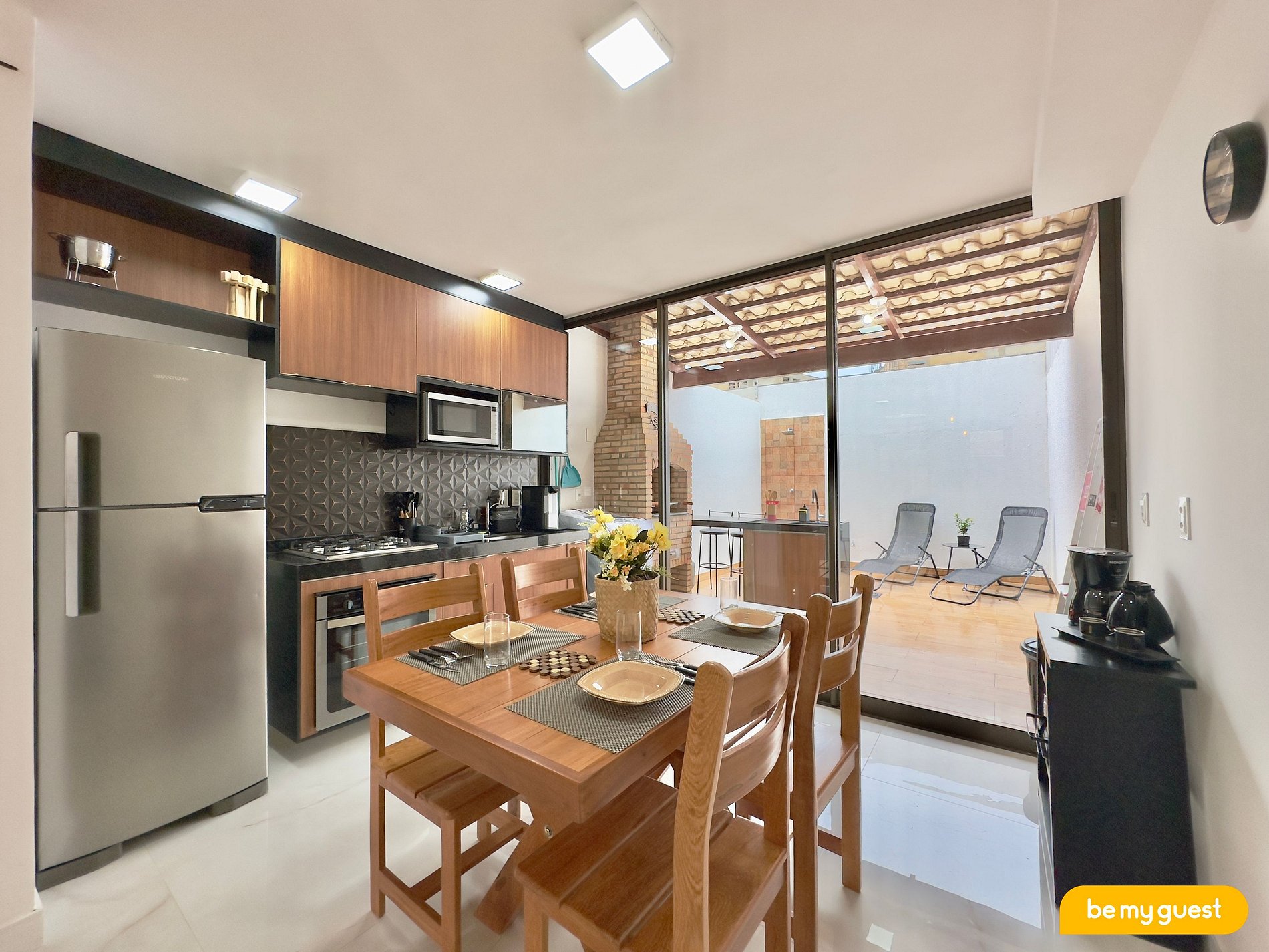 - Cozinha completa com eletrodomésticos essenciais e mesa de jantar
