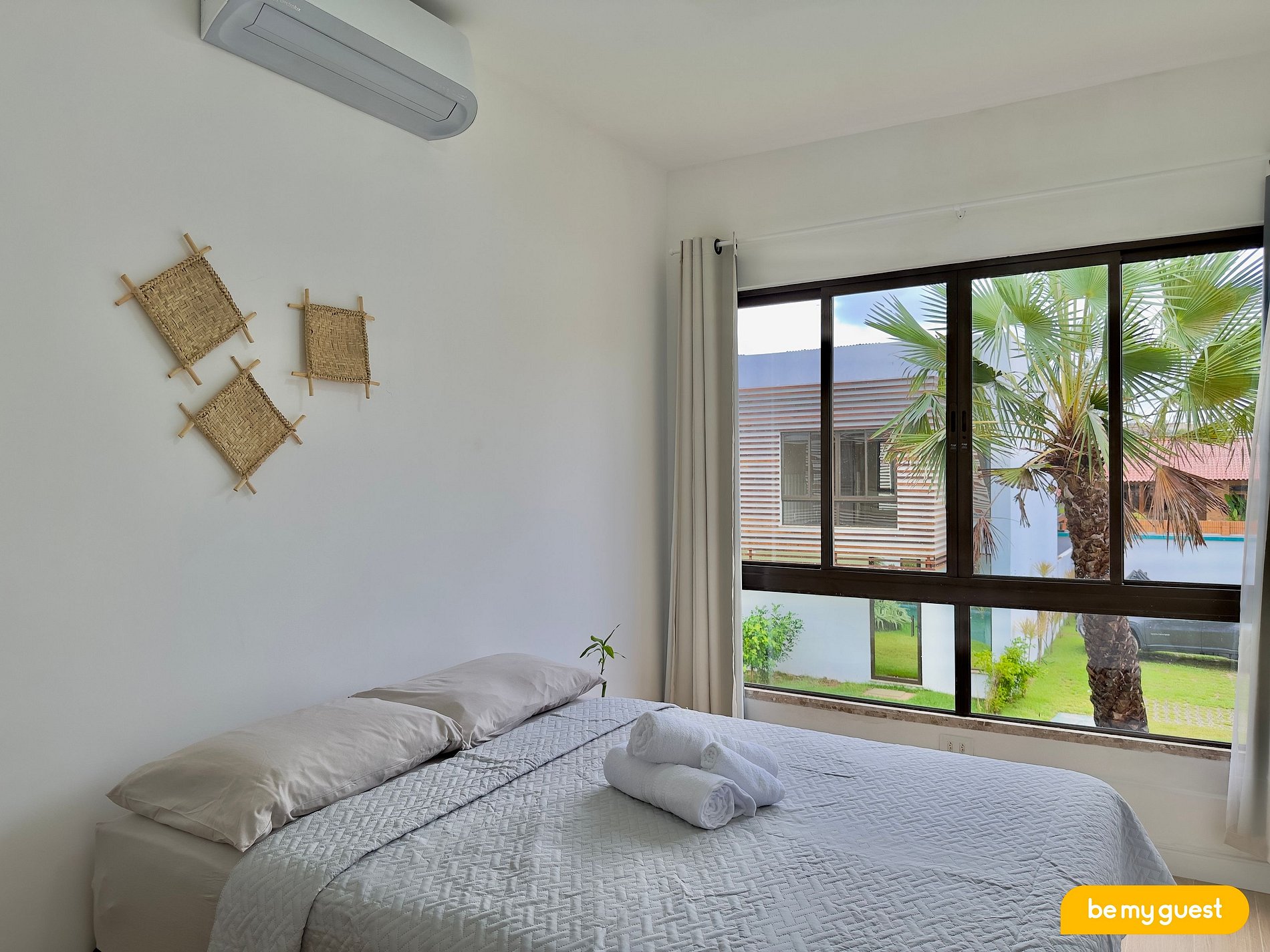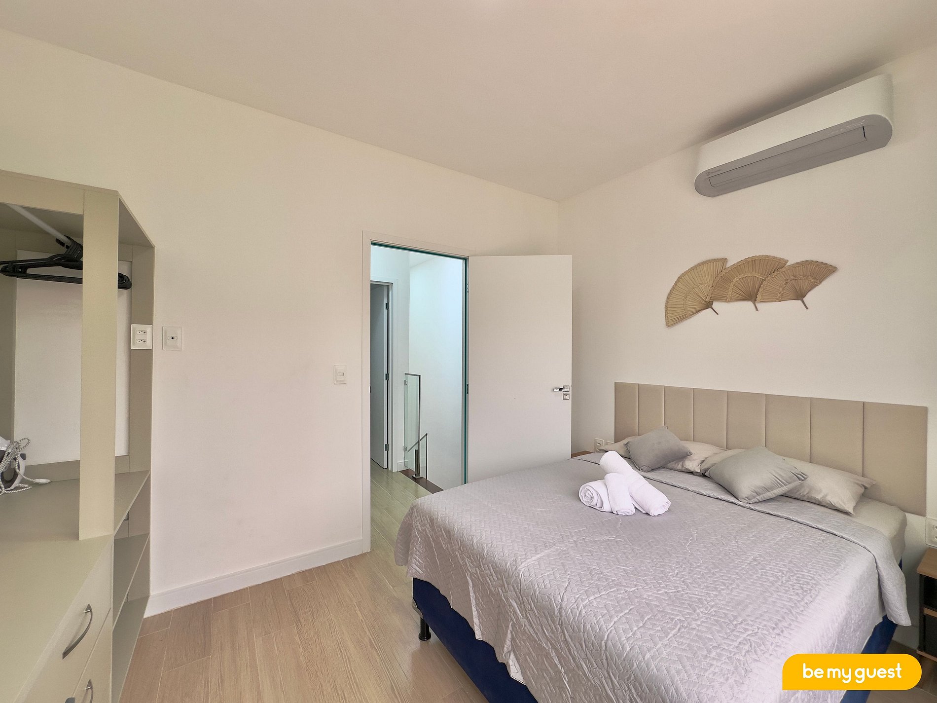 - Quarto principal decorado e com Cama Queen + Ar Condicionado