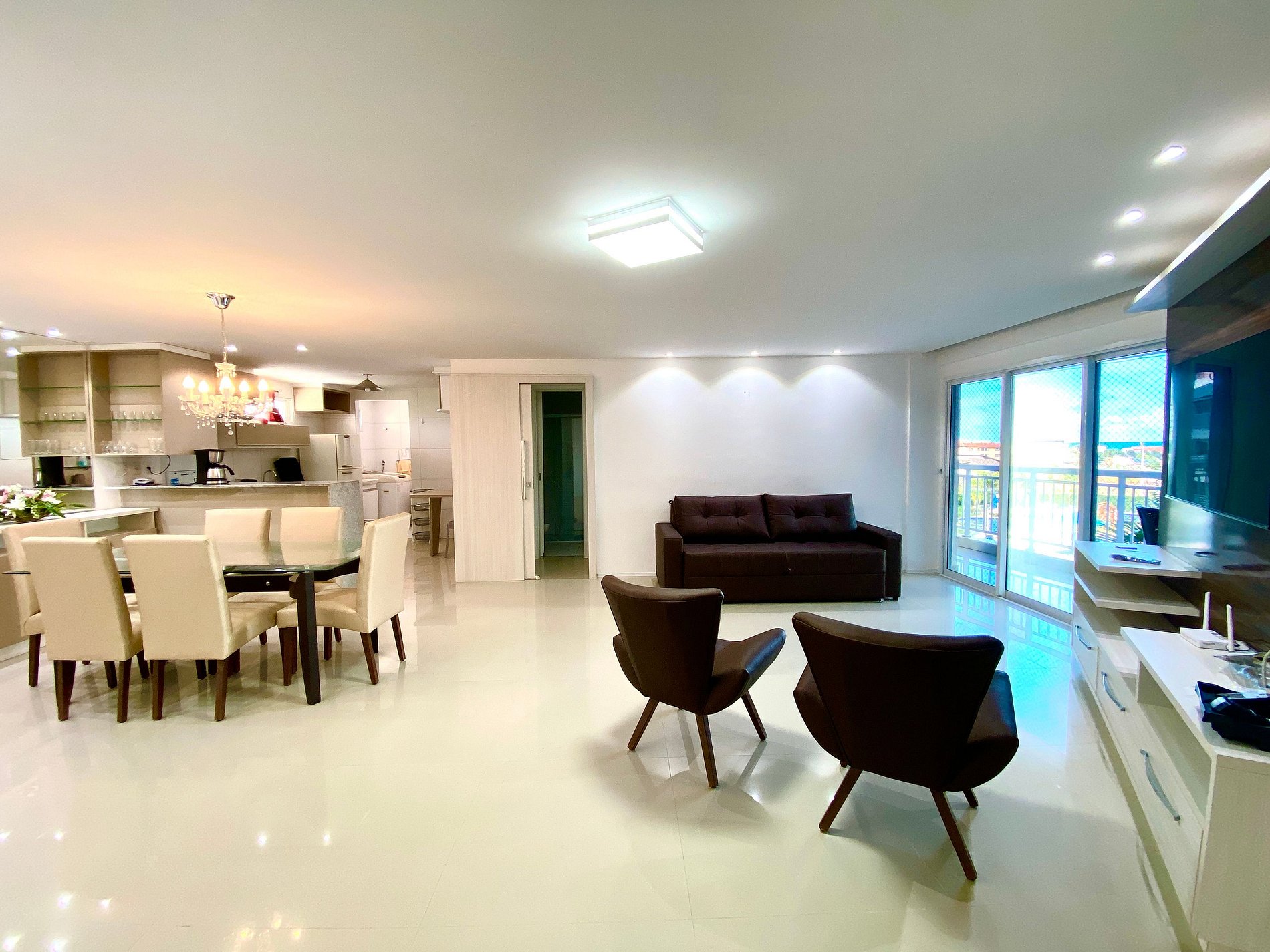 Este apartamento de três quartos é completamente mobiliado e decorado com um estilo moderno e sofisticado, proporcionando um ambiente aconchegante e relaxante para sua estadia. A sala de estar é espaçosa e luminosa, com uma varanda maravilhosa que oferecem uma vista panorâmica da piscina. A cozinha é totalmente equipada com utensílios, eletrodomésticos e bancadas, permitindo preparar suas refeições favoritas com facilidade.