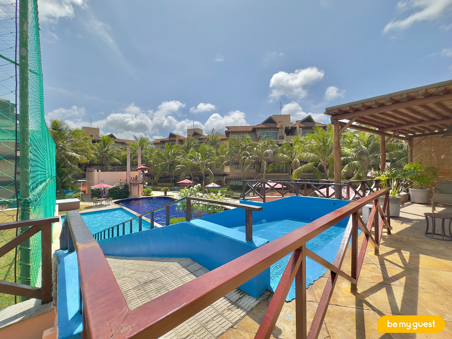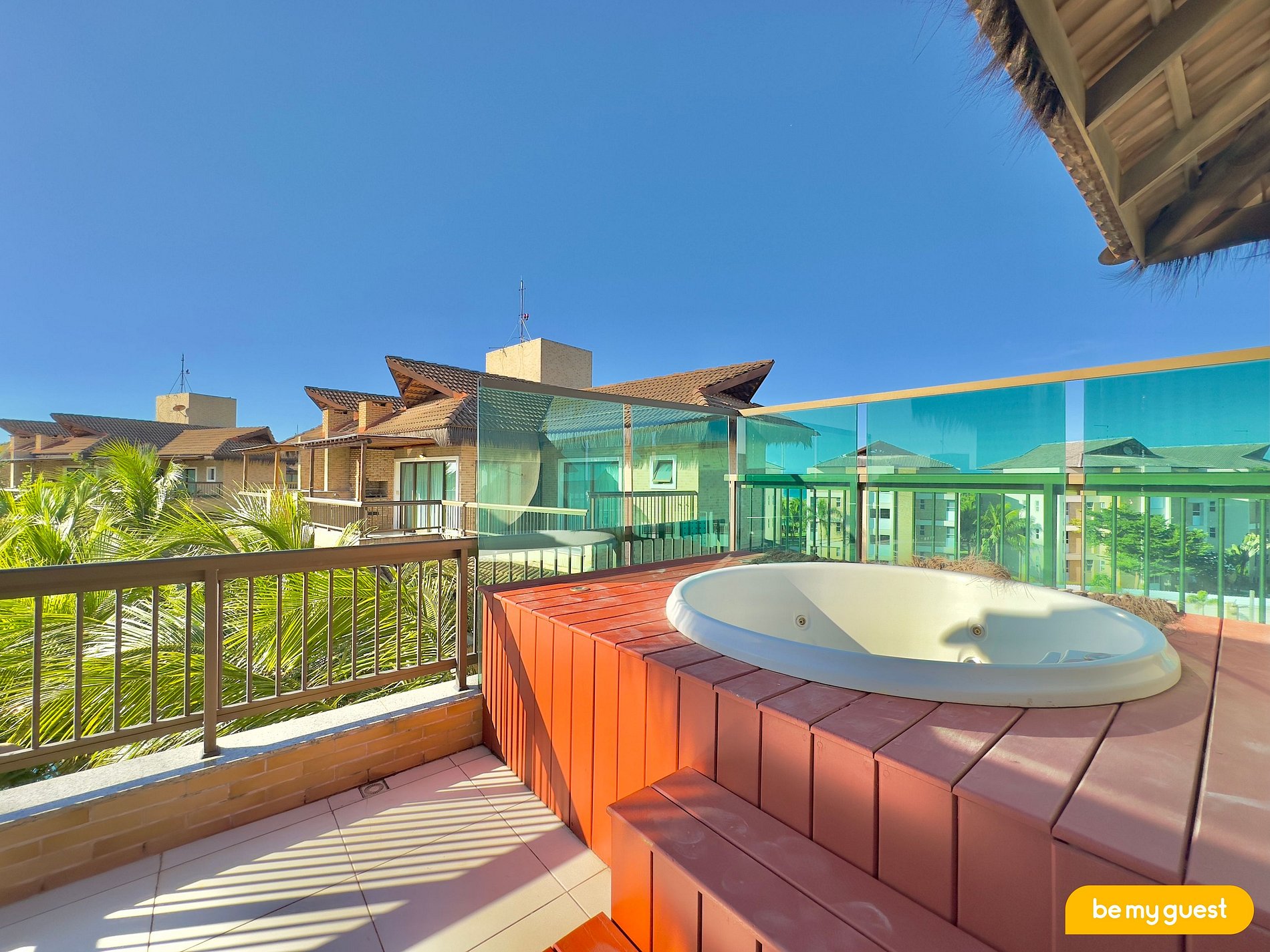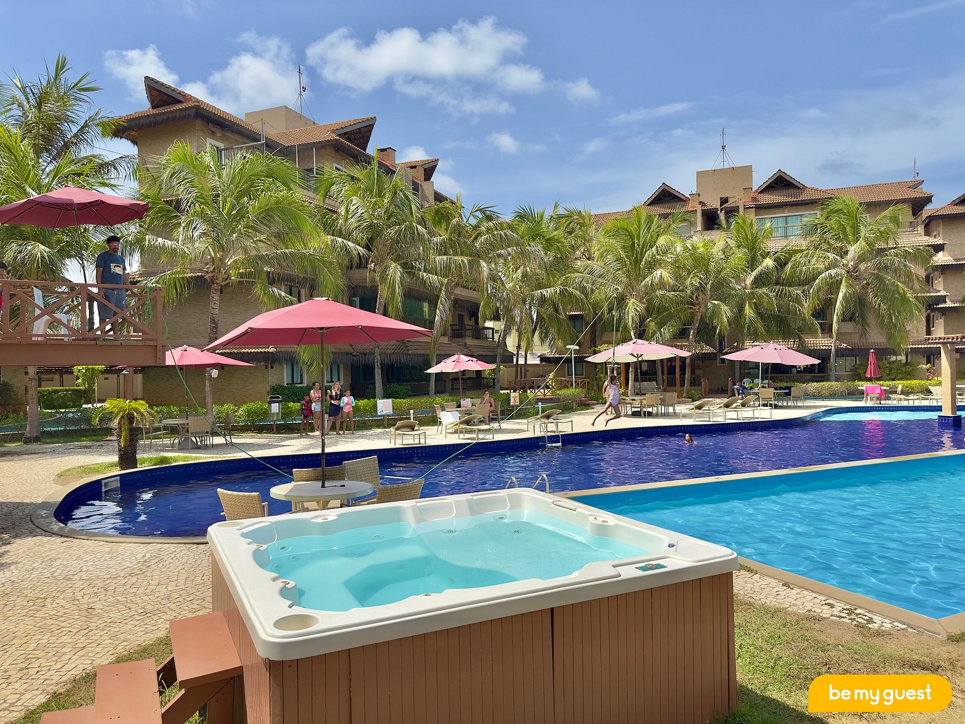 - Varanda superior com churrasqueira completa e banheira exclusiva, além de uma bela vista do resort