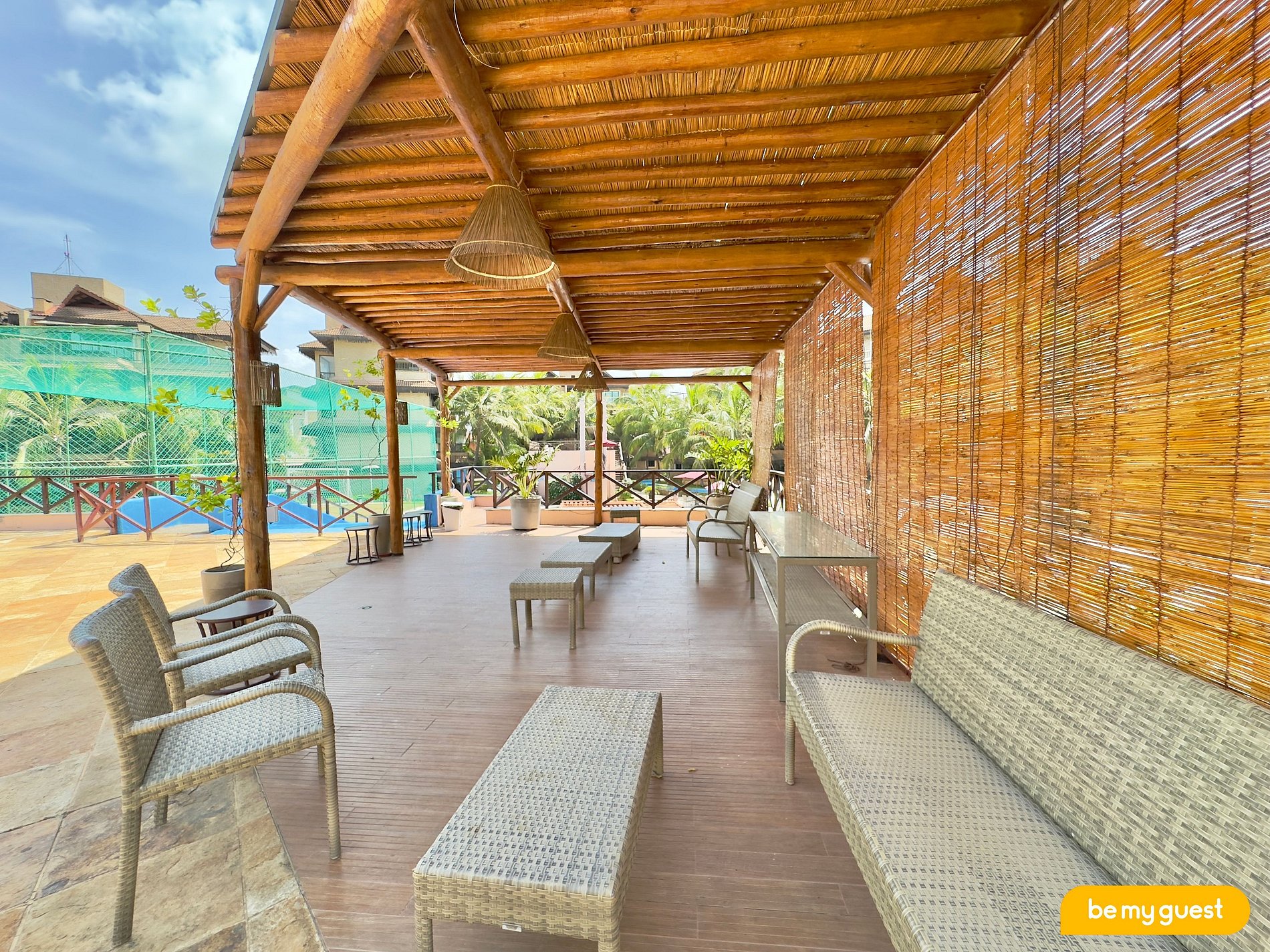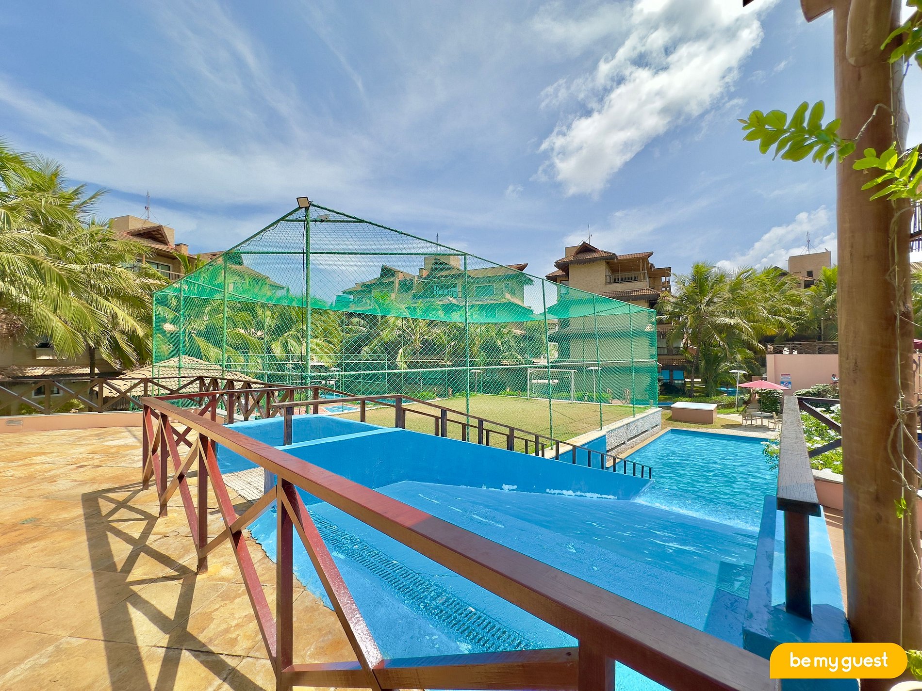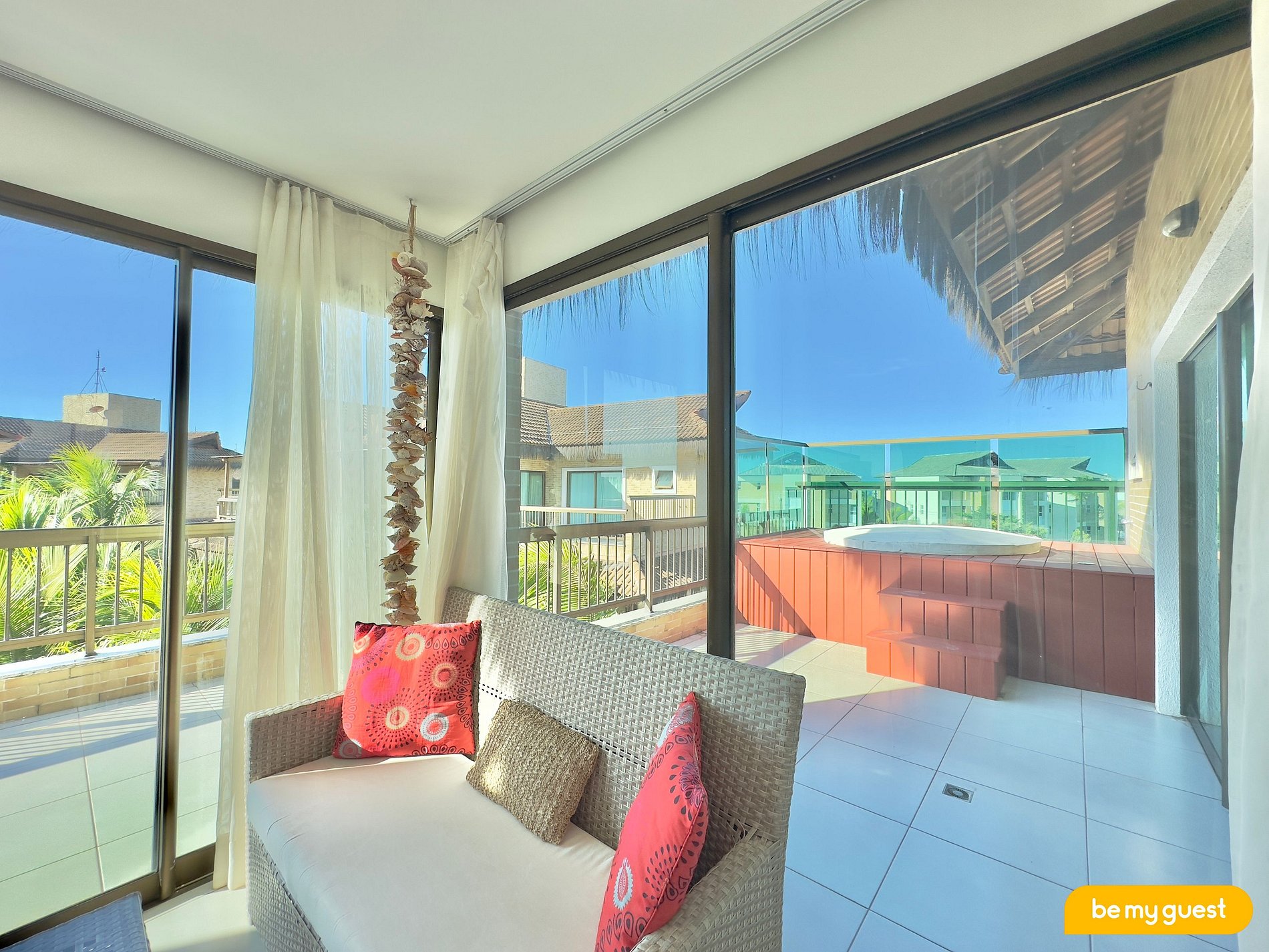 - Varanda superior com churrasqueira completa e banheira exclusiva, além de uma bela vista do resort