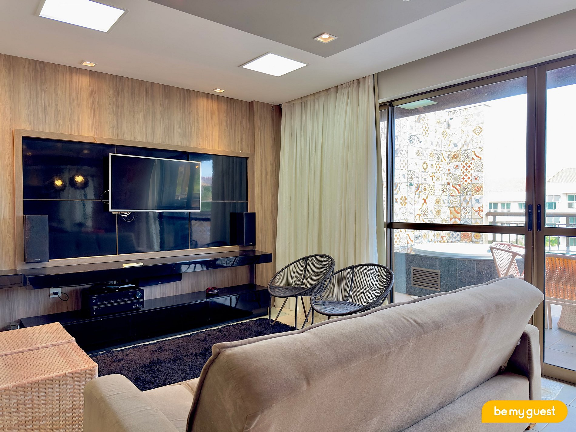 A acomodação conta com uma bela varanda com jacuzzi privativa e sala estar ampla e climatizada para maior comodidade.