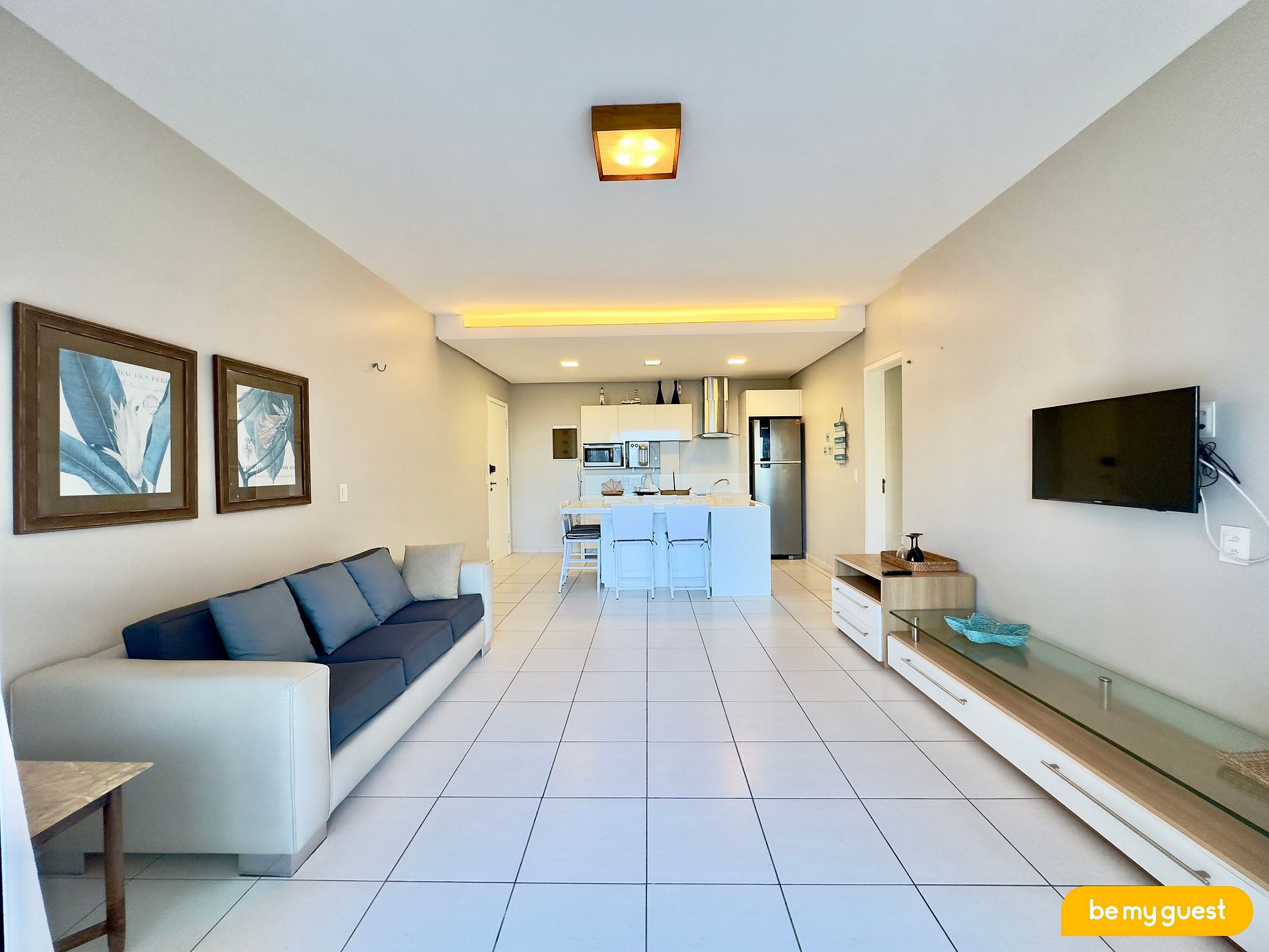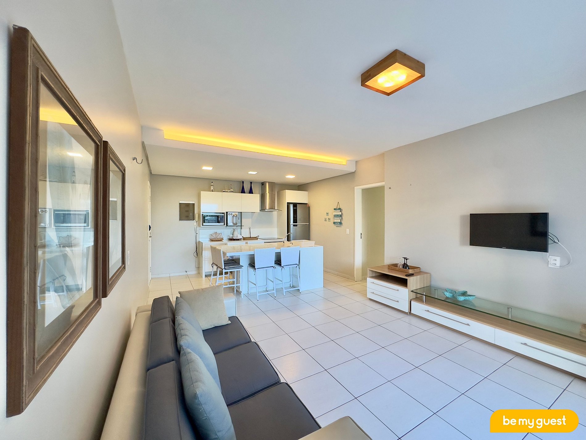 - Sala de Estar bem ampla com mesa de jantar, sofá e TV Smart
