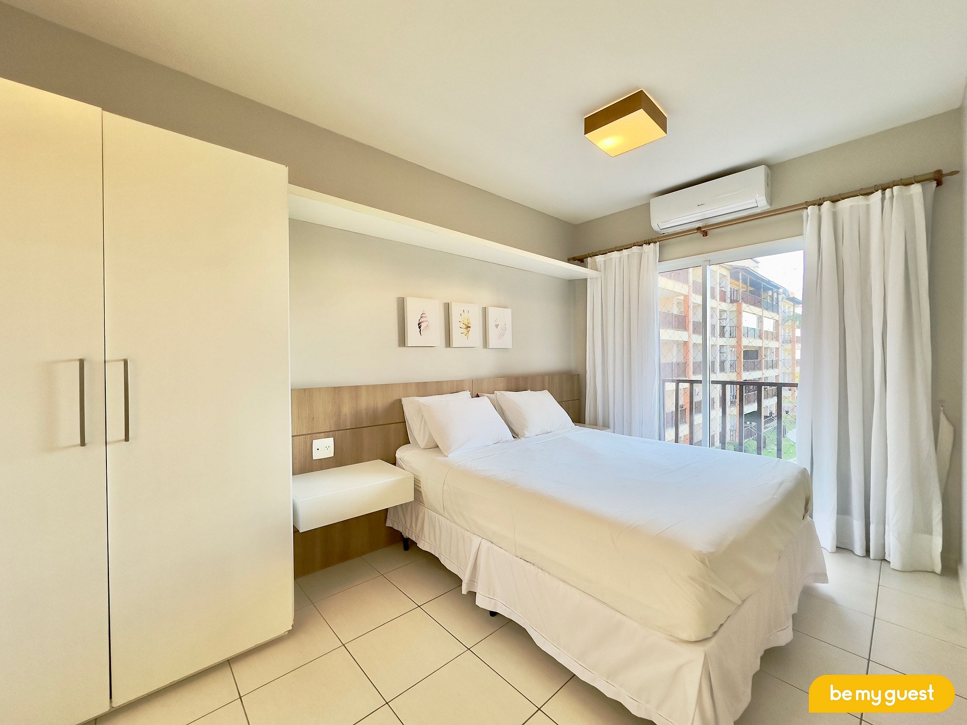 - Suíte principal com Cama Casal Queen, guarda roupas, varanda privativa + Ar Condicionado