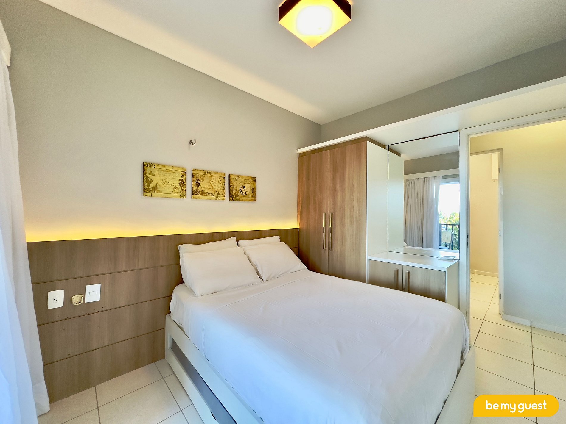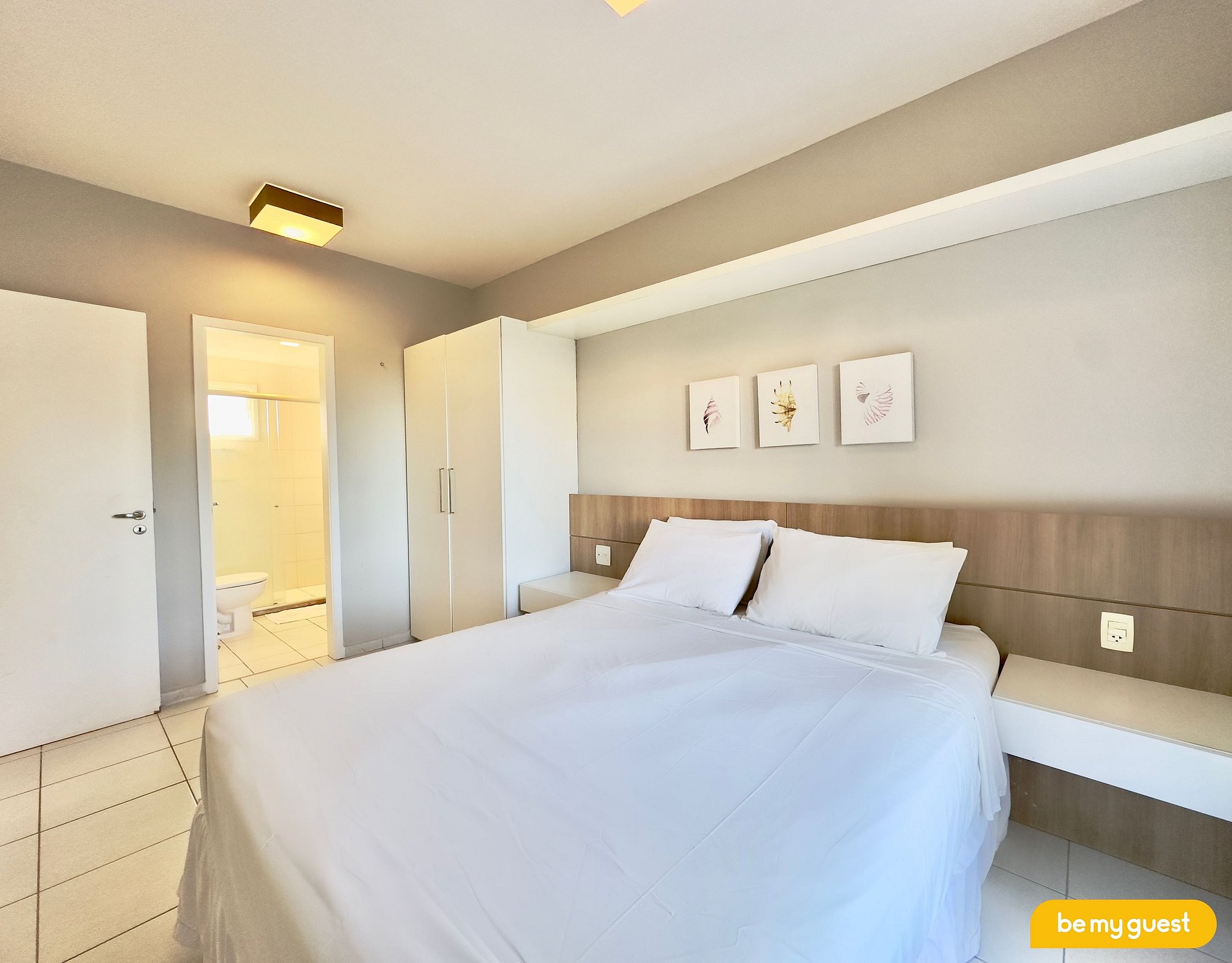 - Suíte principal com Cama Casal Queen, guarda roupas, varanda privativa + Ar Condicionado