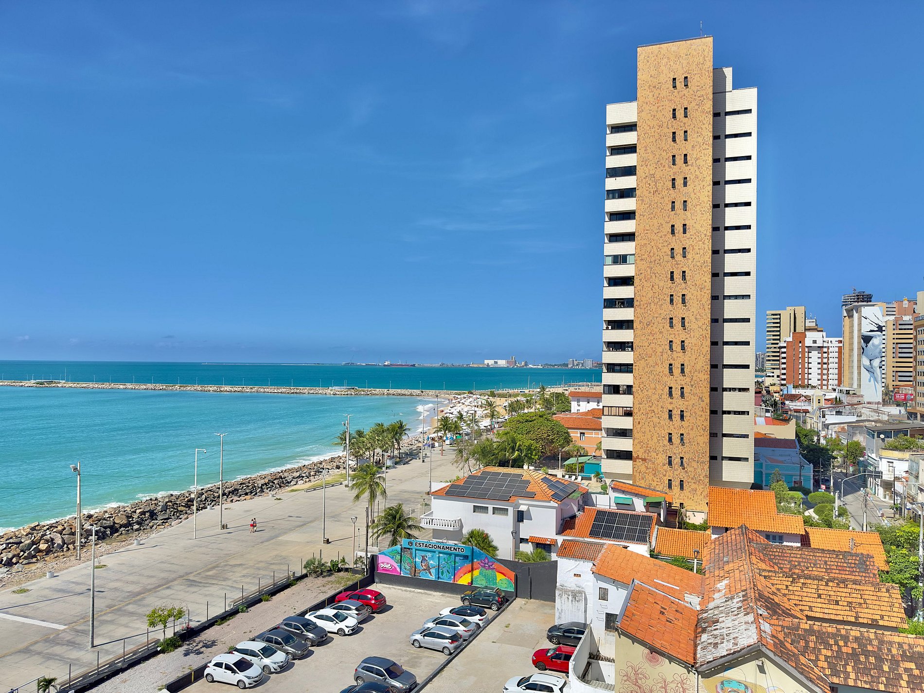 O prédio conta com uma piscina com vista para o mar, recepção, segurança e ambiente acolhedor, ideal tanto para quem viaja a lazer quanto a trabalho. É o lugar perfeito para quem busca conforto, praticidade e a experiência de estar hospedado bem em frente ao mar, no coração de Fortaleza.