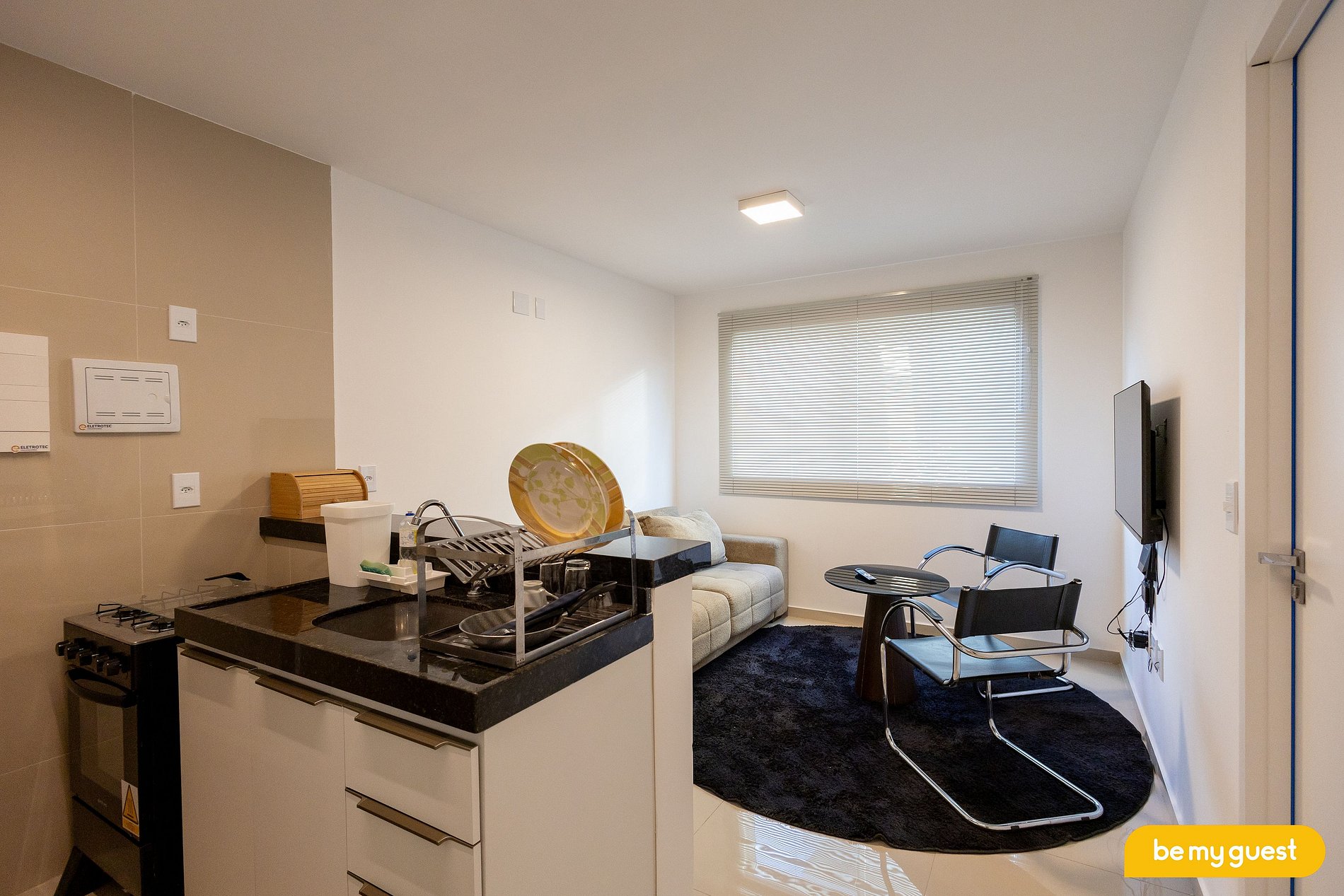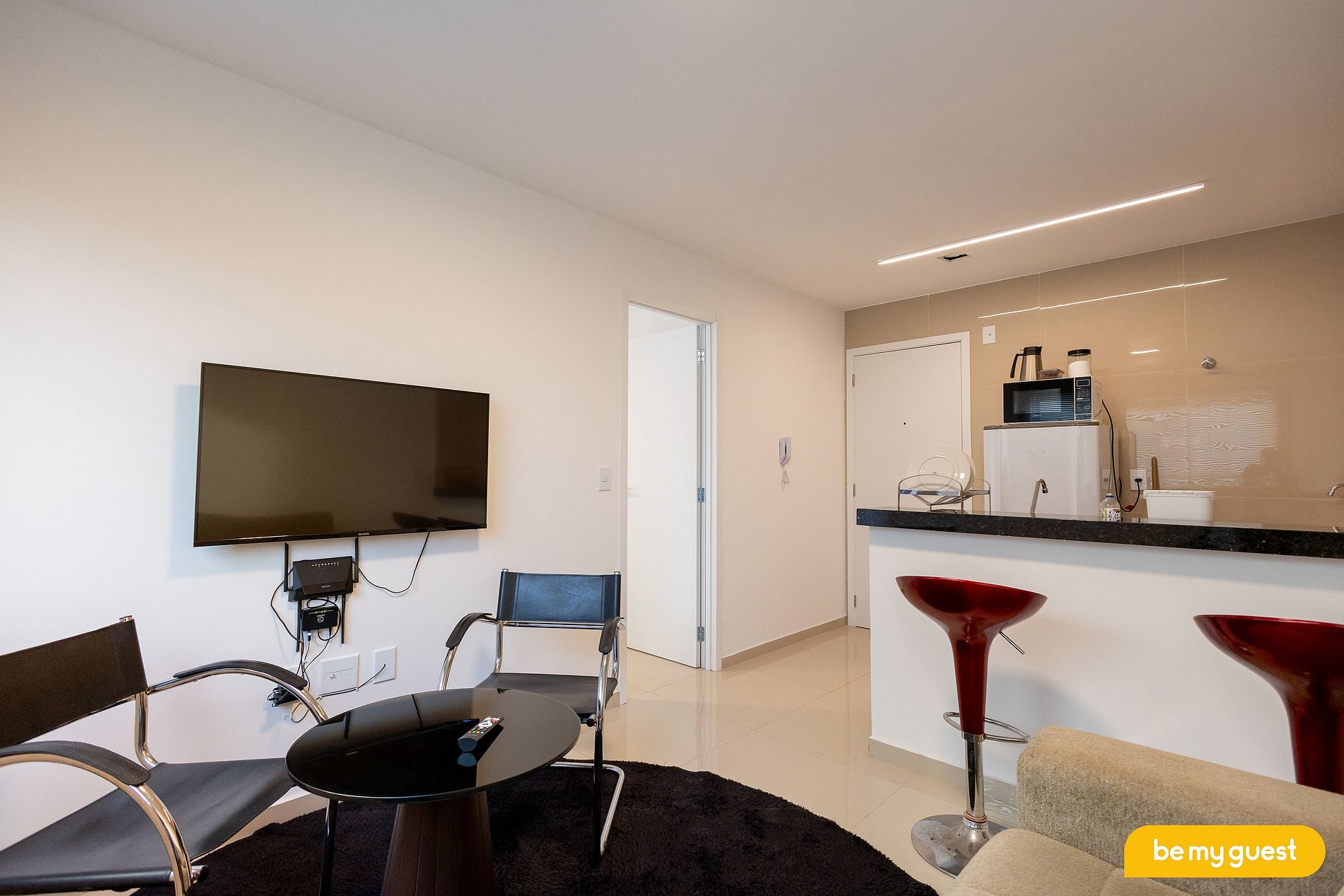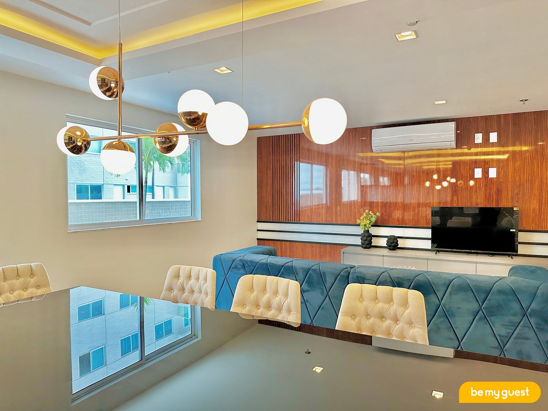 - Sala de estar climatizada com TV Smart e integração com a cozinha