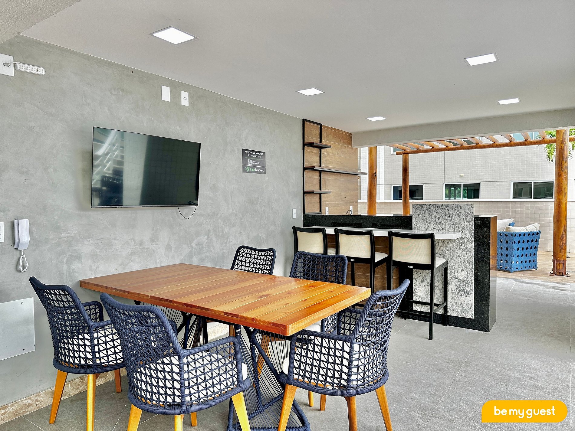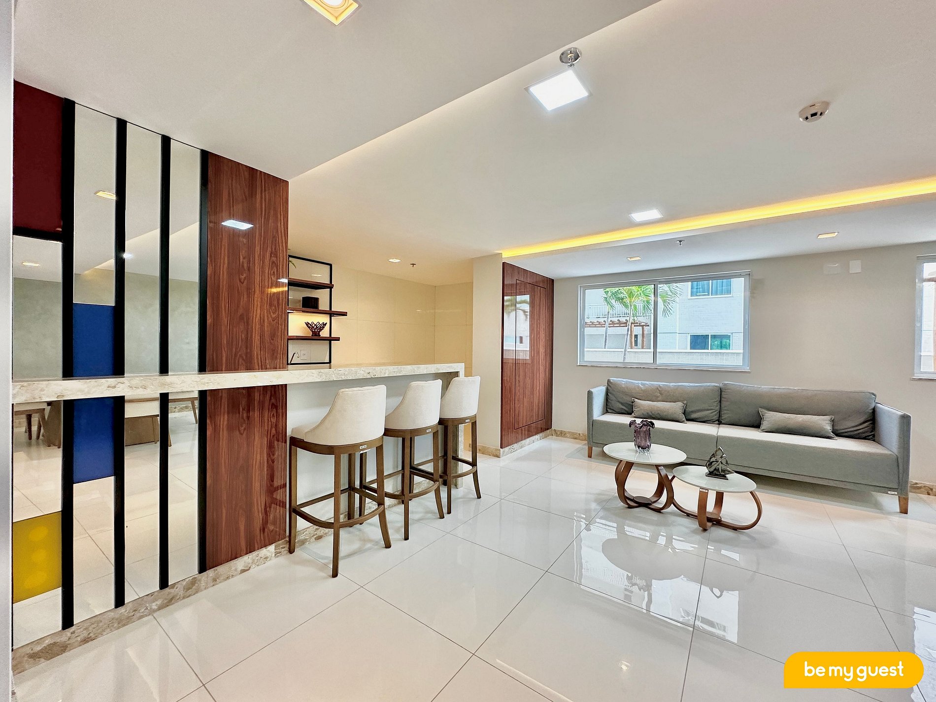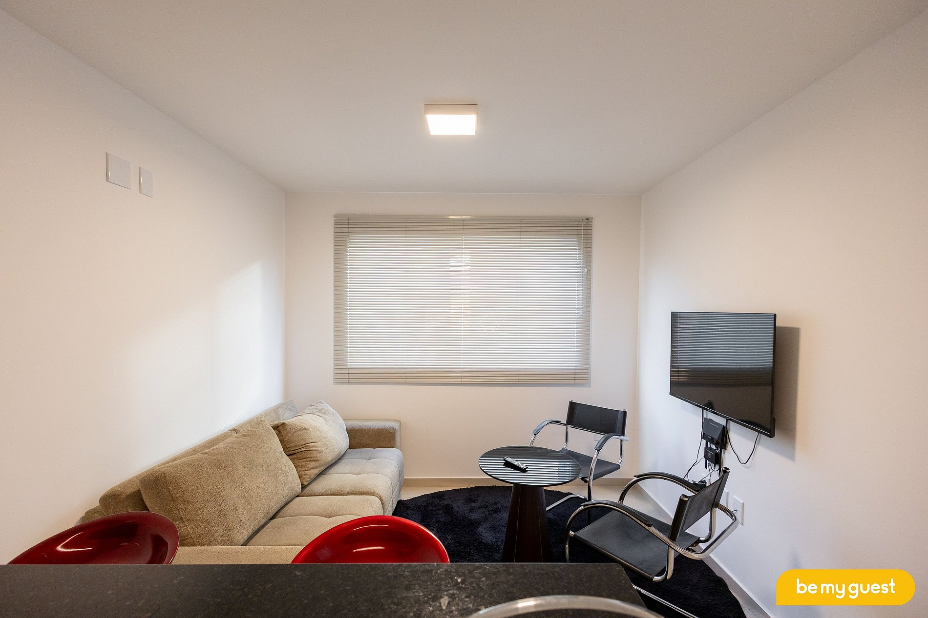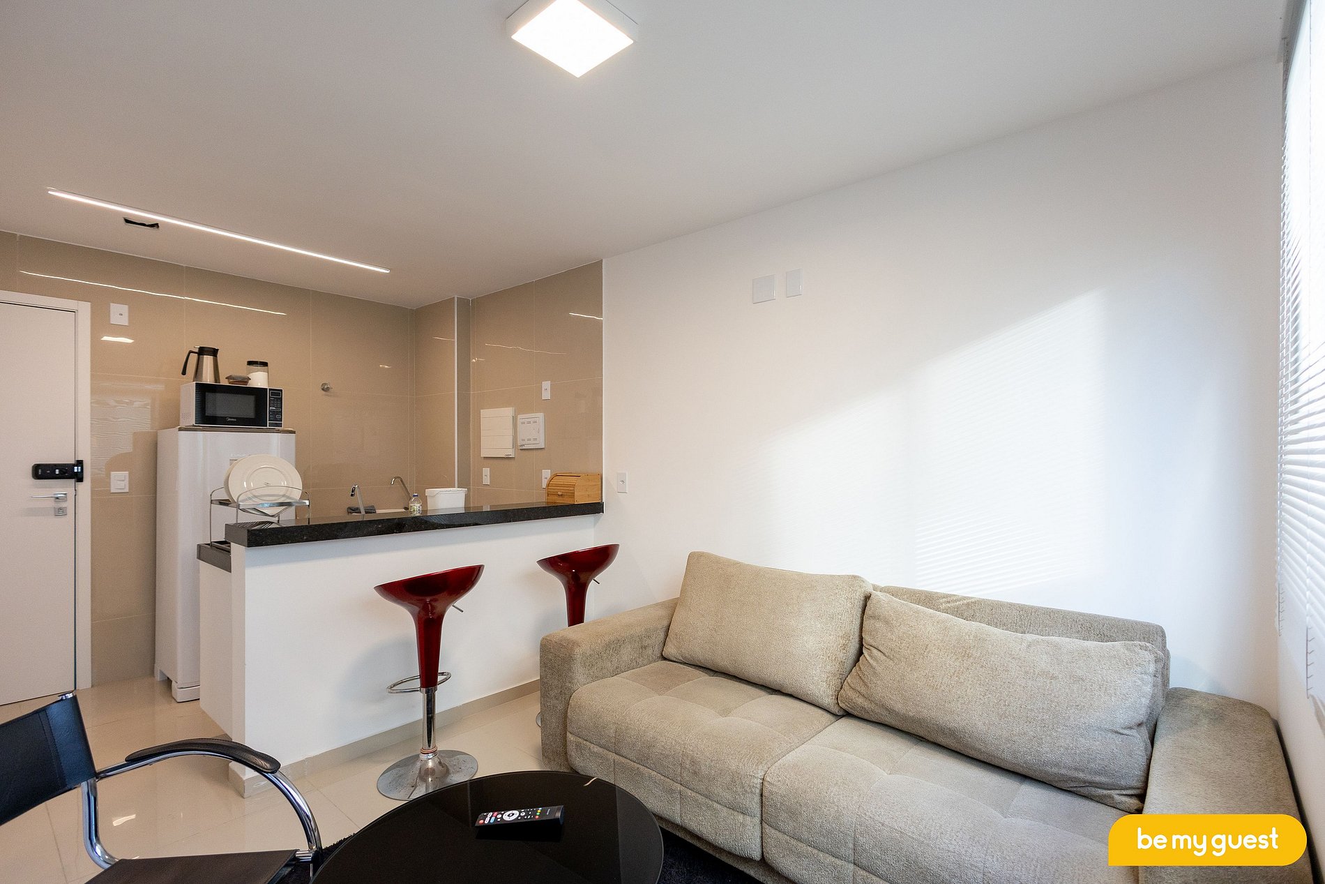 - Sala de estar climatizada com TV Smart e integração com a cozinha