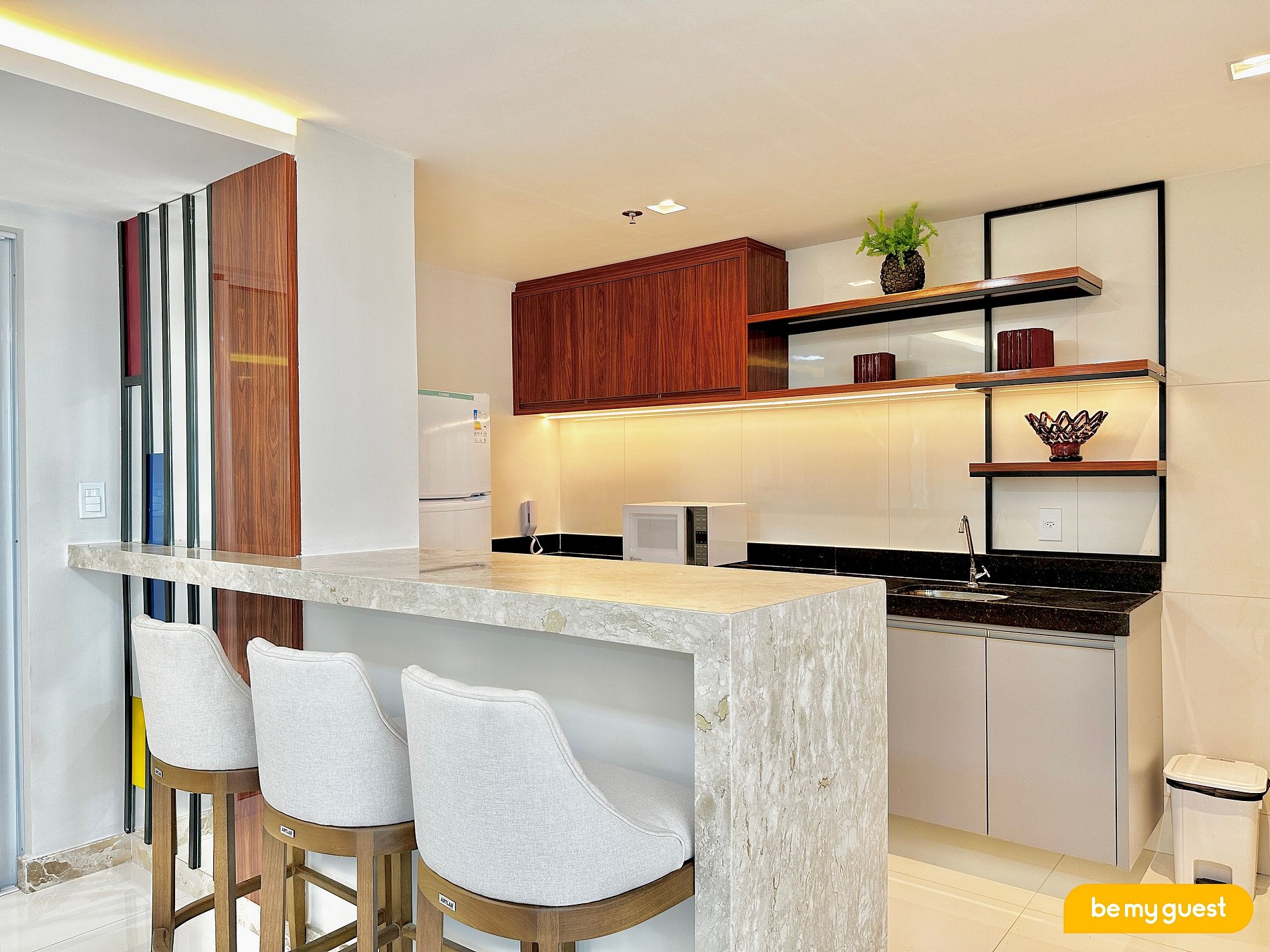 - Cozinha estilo americana equipada com os itens essenciais