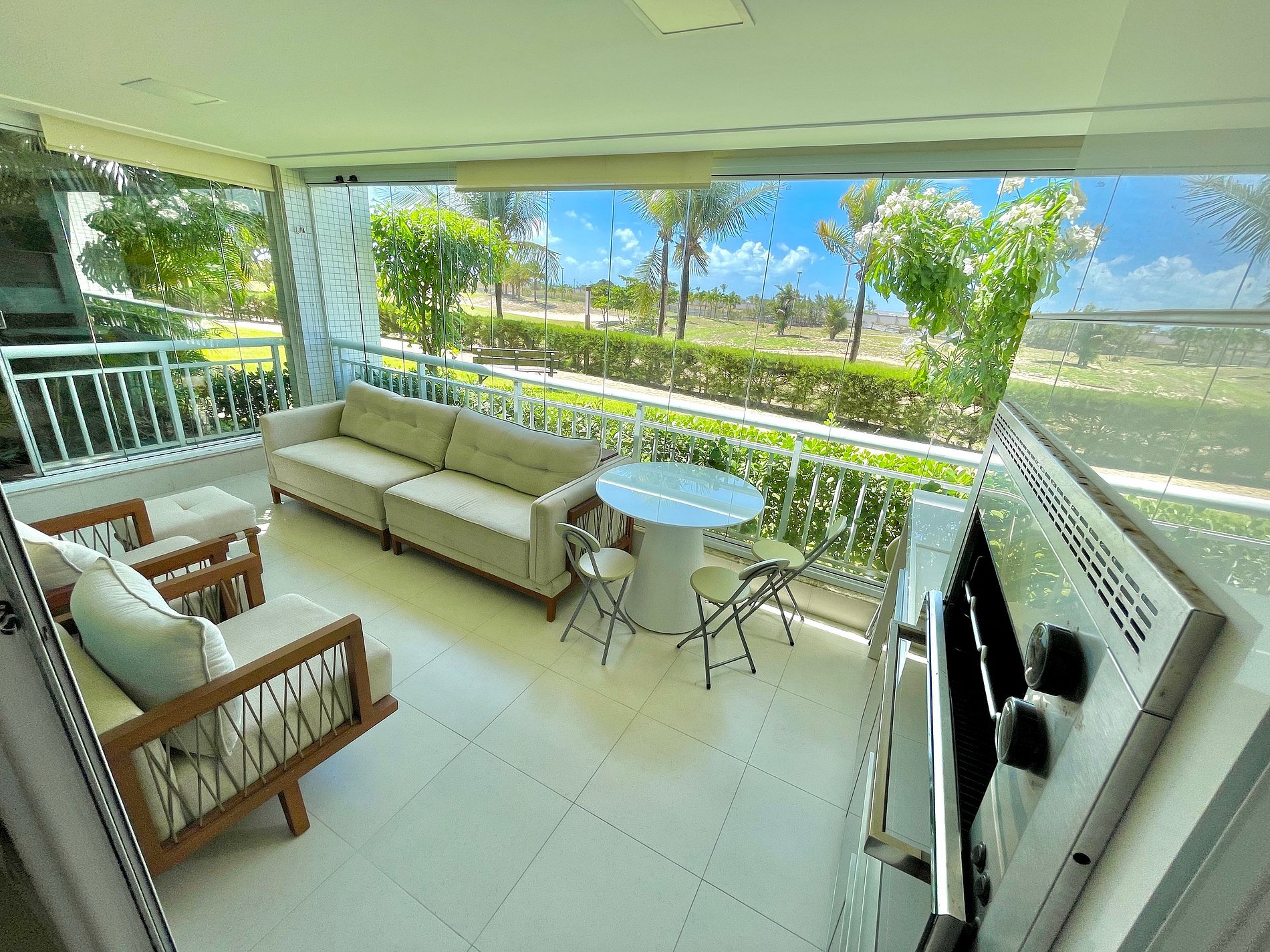Apto possui varanda conectada com área de lazer do resort!