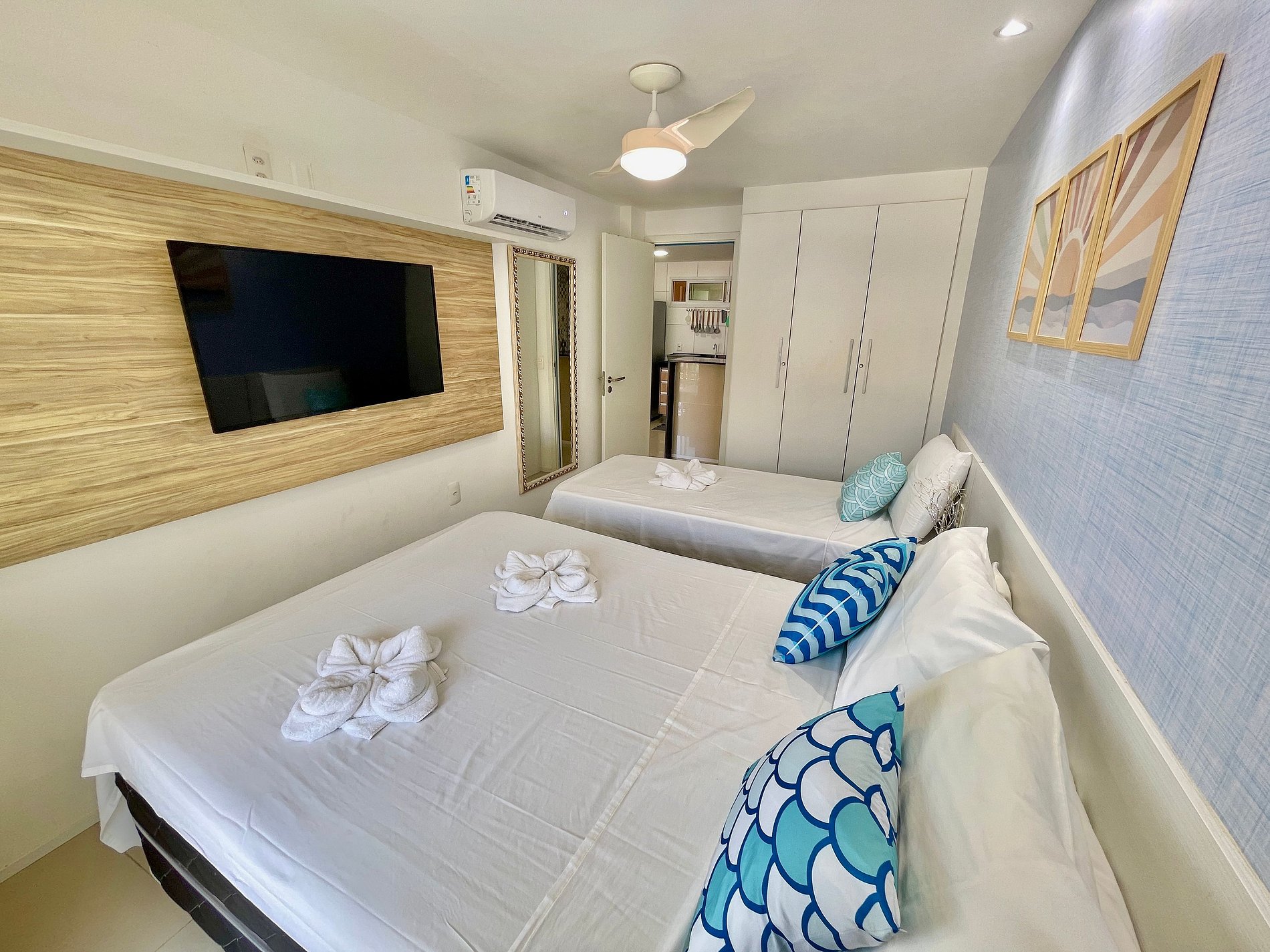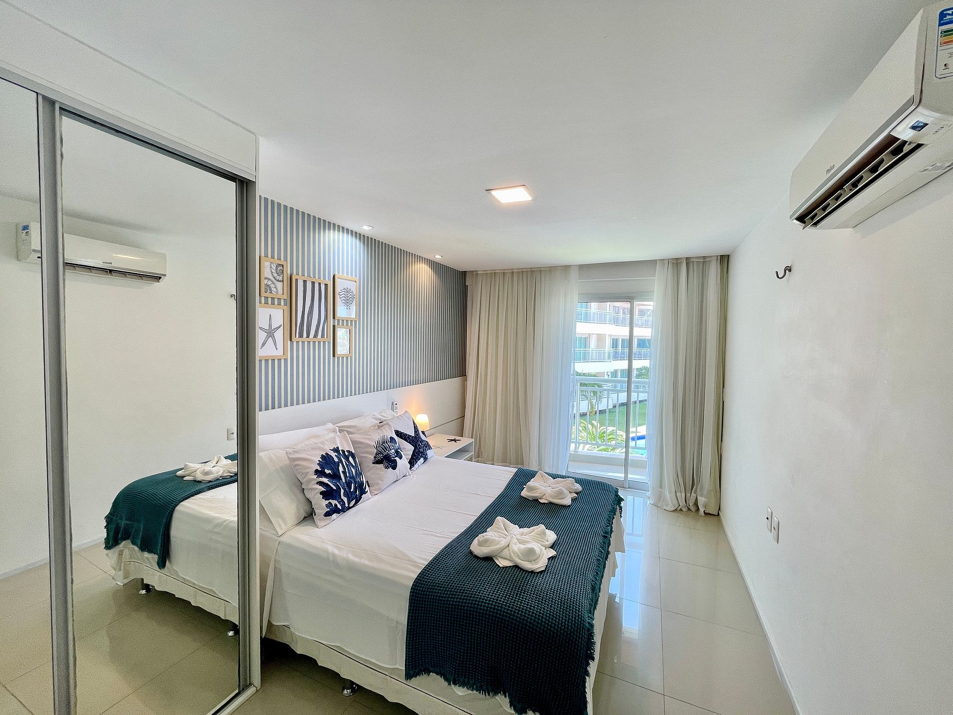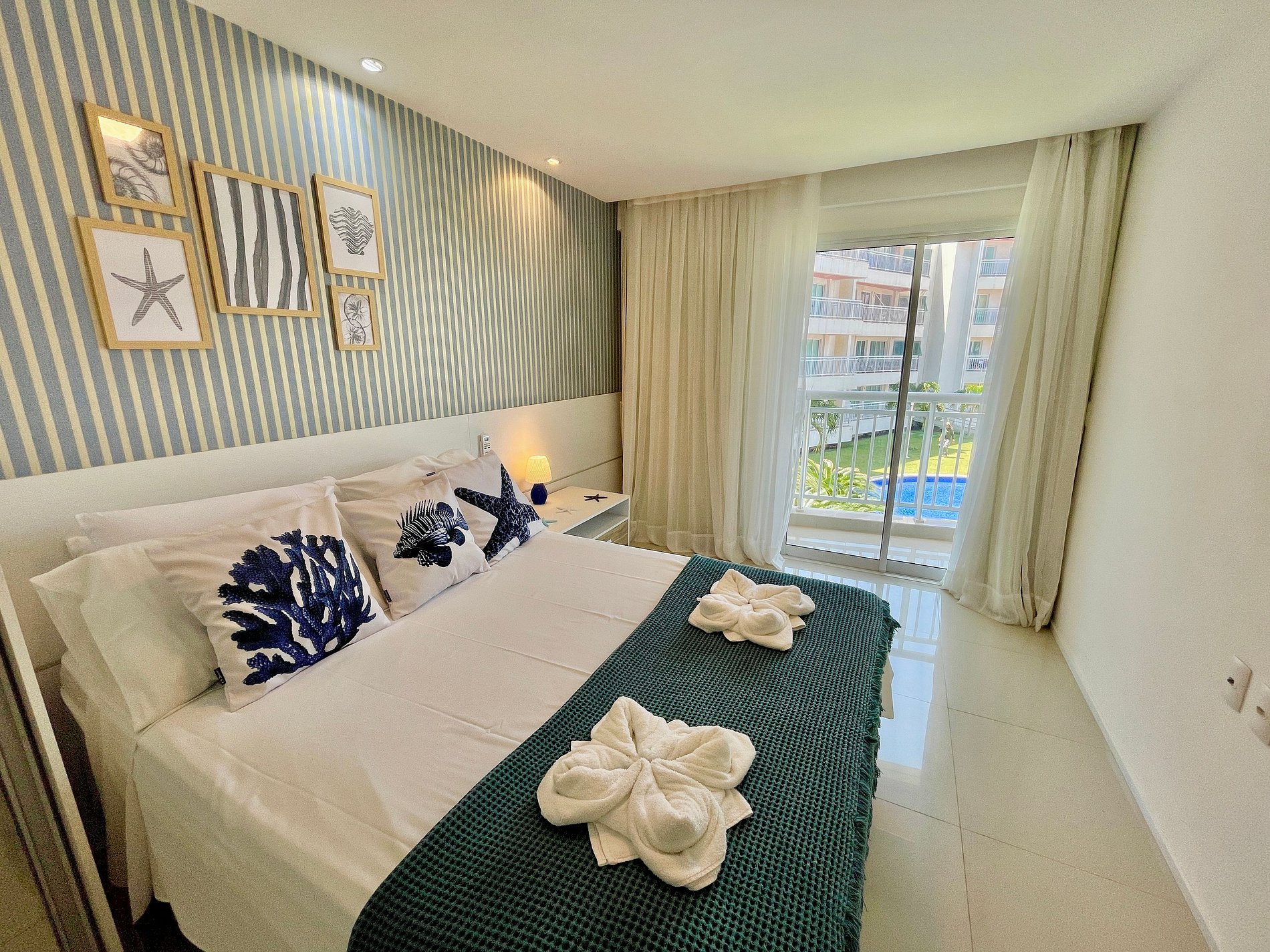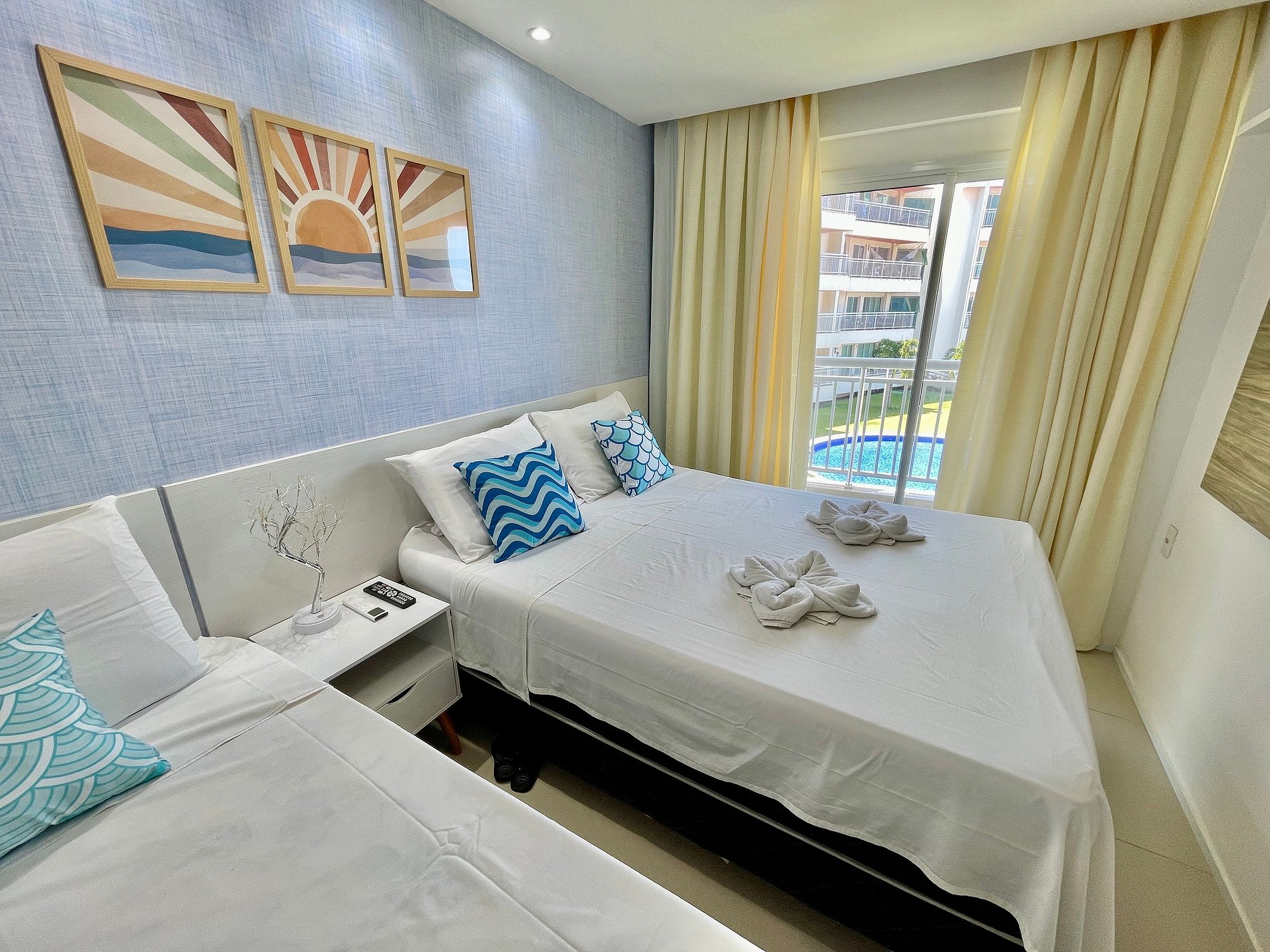 Apartamento super novo e muito bem decorado, com vista para piscina e ar-condicionado em todos os quartos.