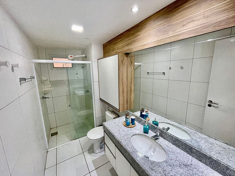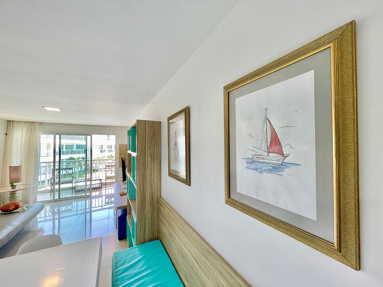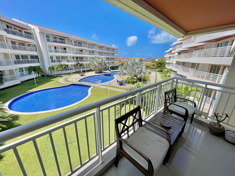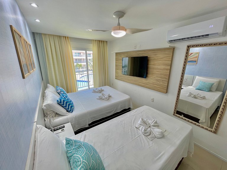 Apartamento super novo e muito bem decorado, com vista para piscina e ar-condicionado em todos os quartos.
