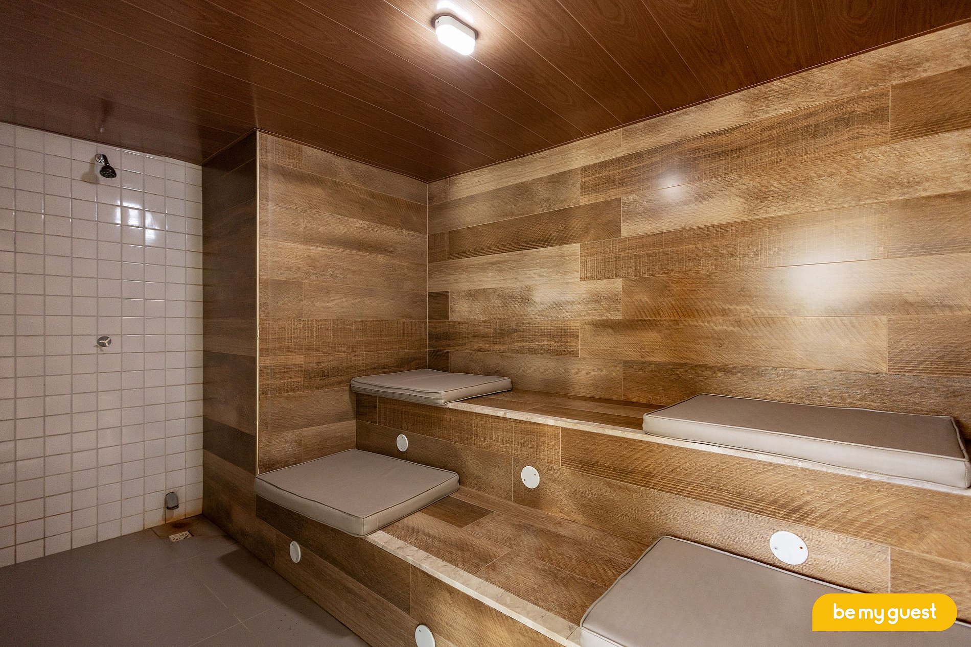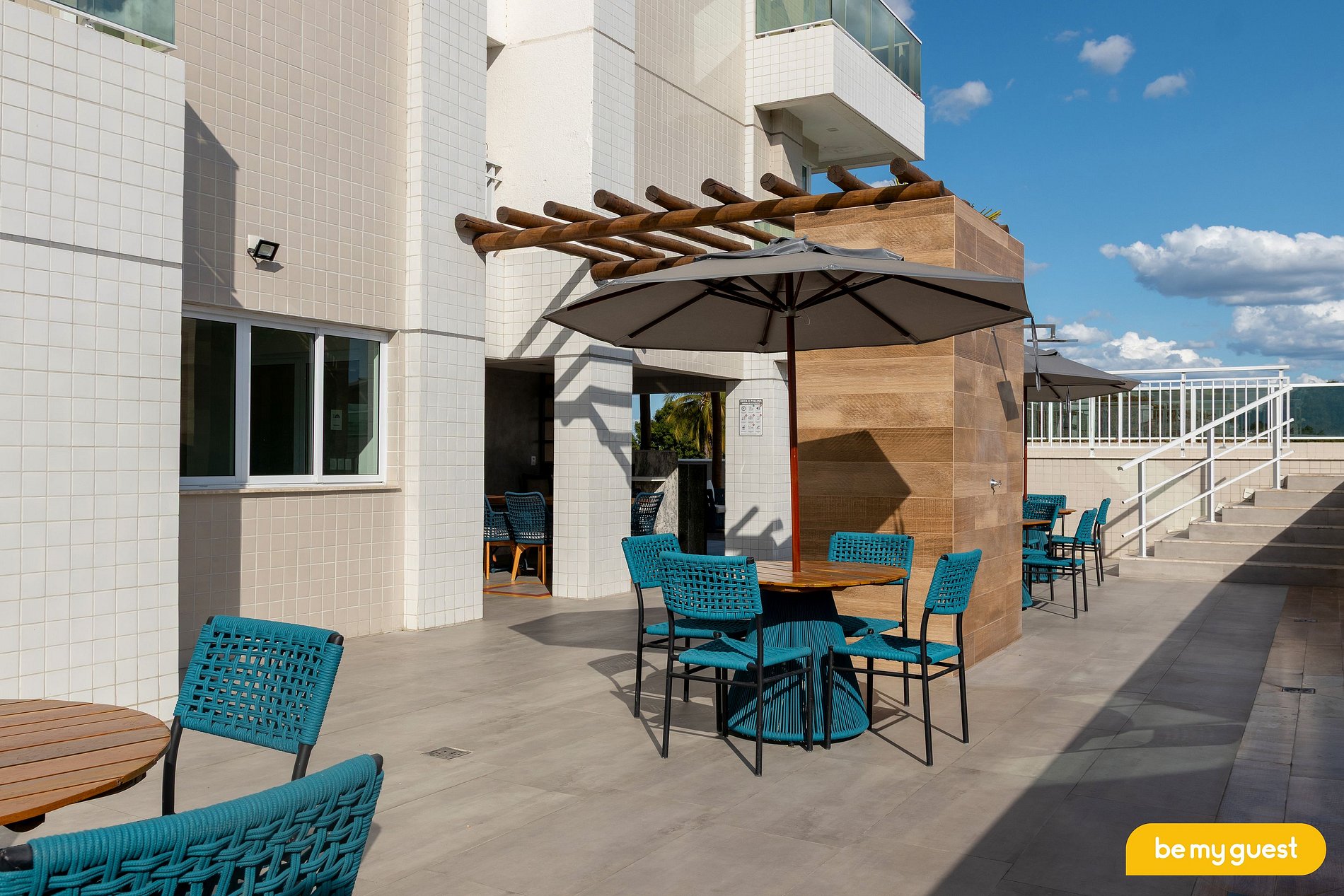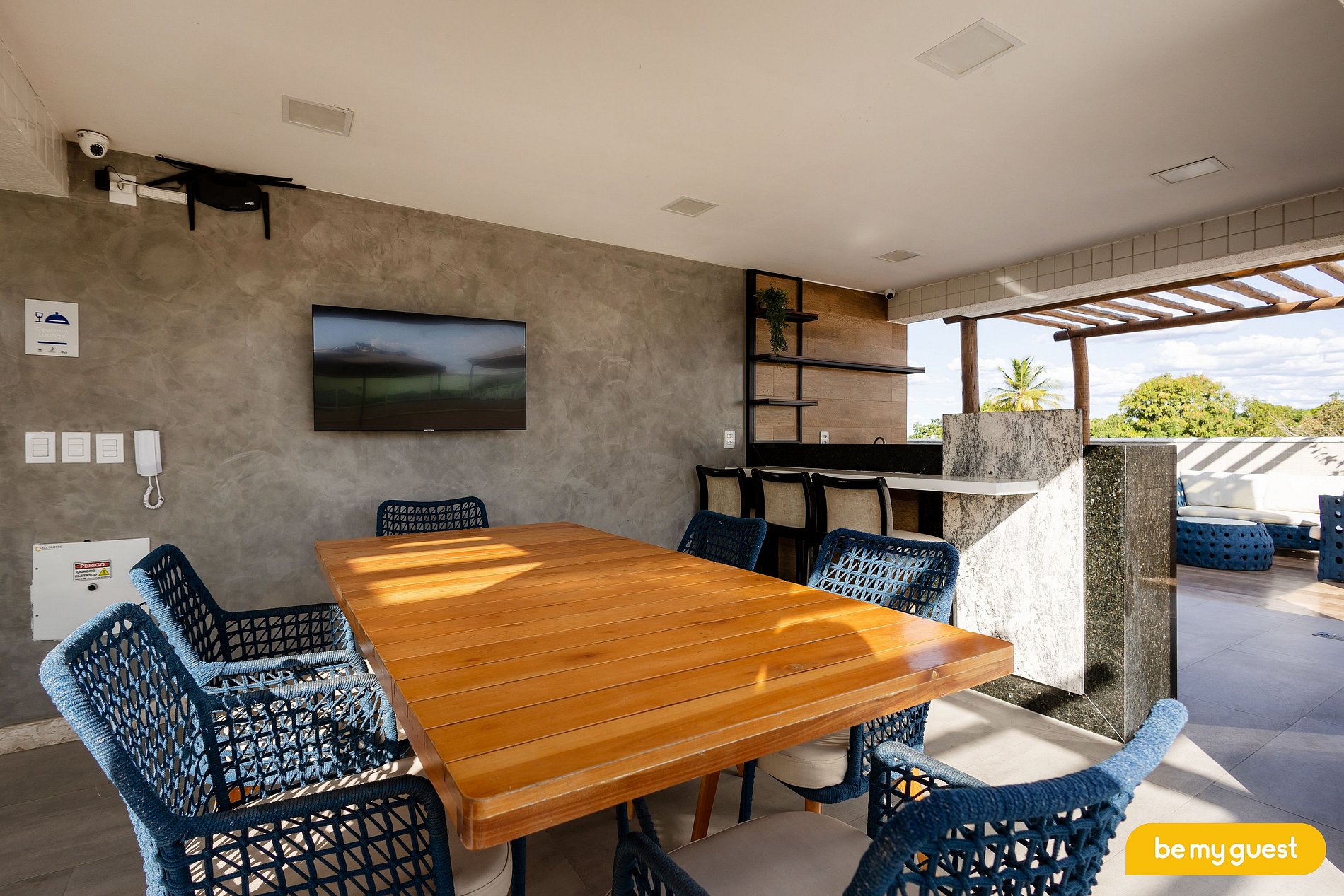Além disso o condomínio possui academia, piscina ampla, deck para eventos, sauna, salão de beleza, salão de festa e um mercadinho próprio para trazer todas as comodidades necessárias para uma estadia tranquila e completa.