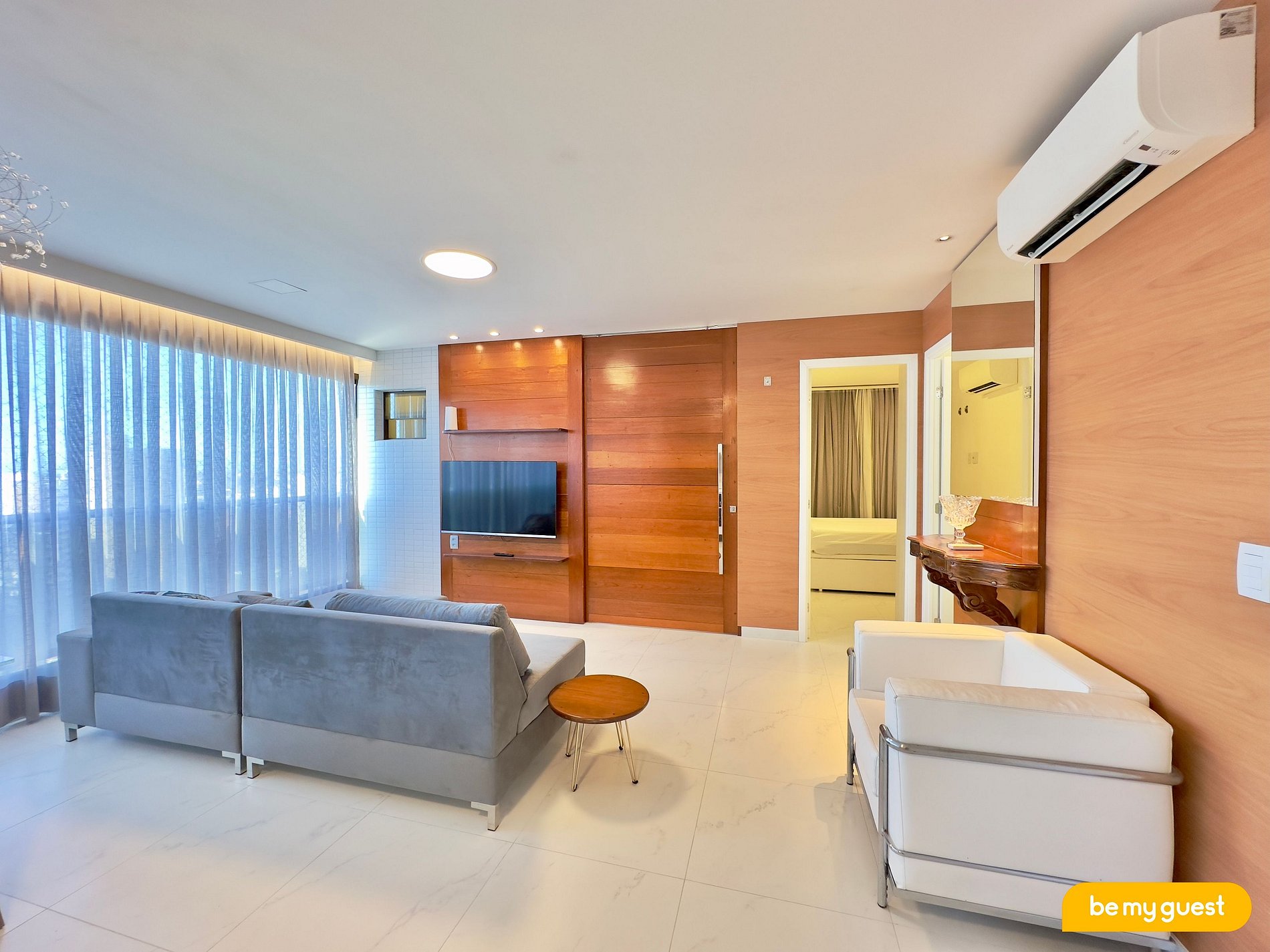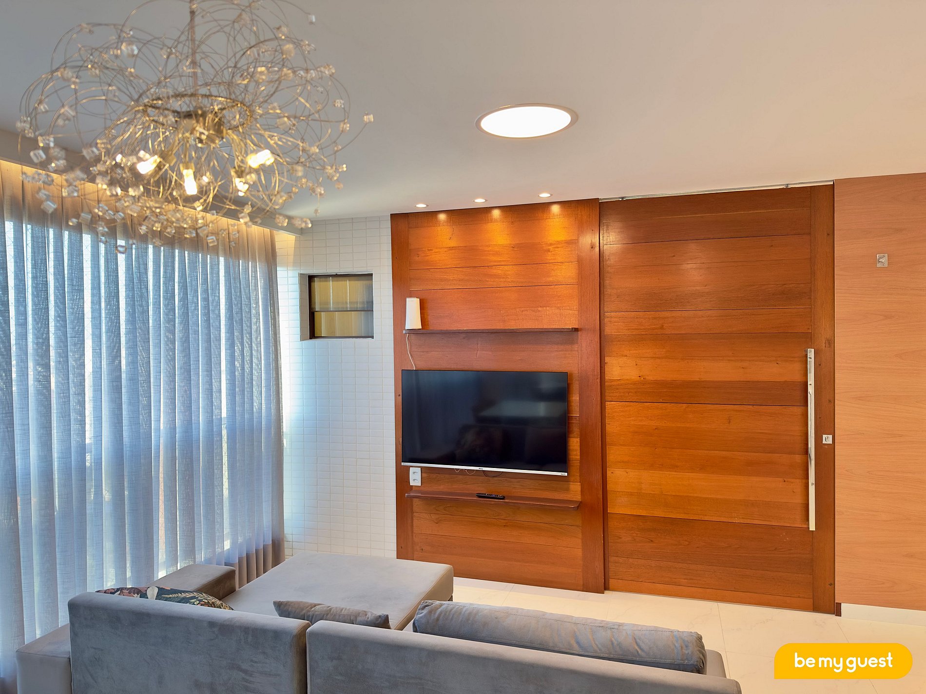 - Sala de estar ampla e muito bem decorada, com sofá super confortável, TV Smart + ar-condicionado