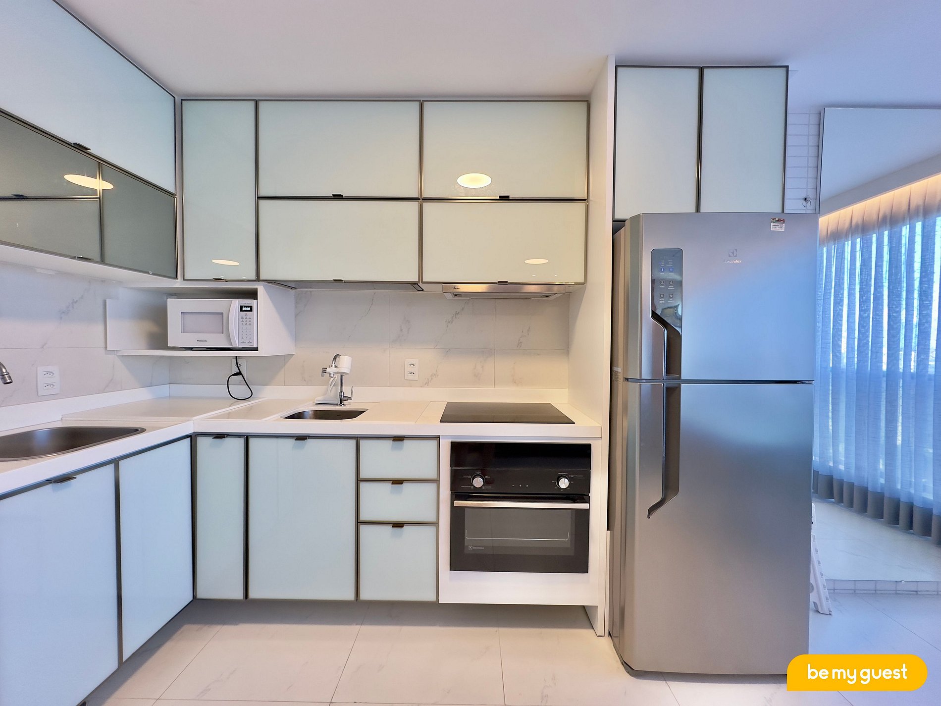 - Cozinha moderna com todos os itens essenciais e integrada com a sala
