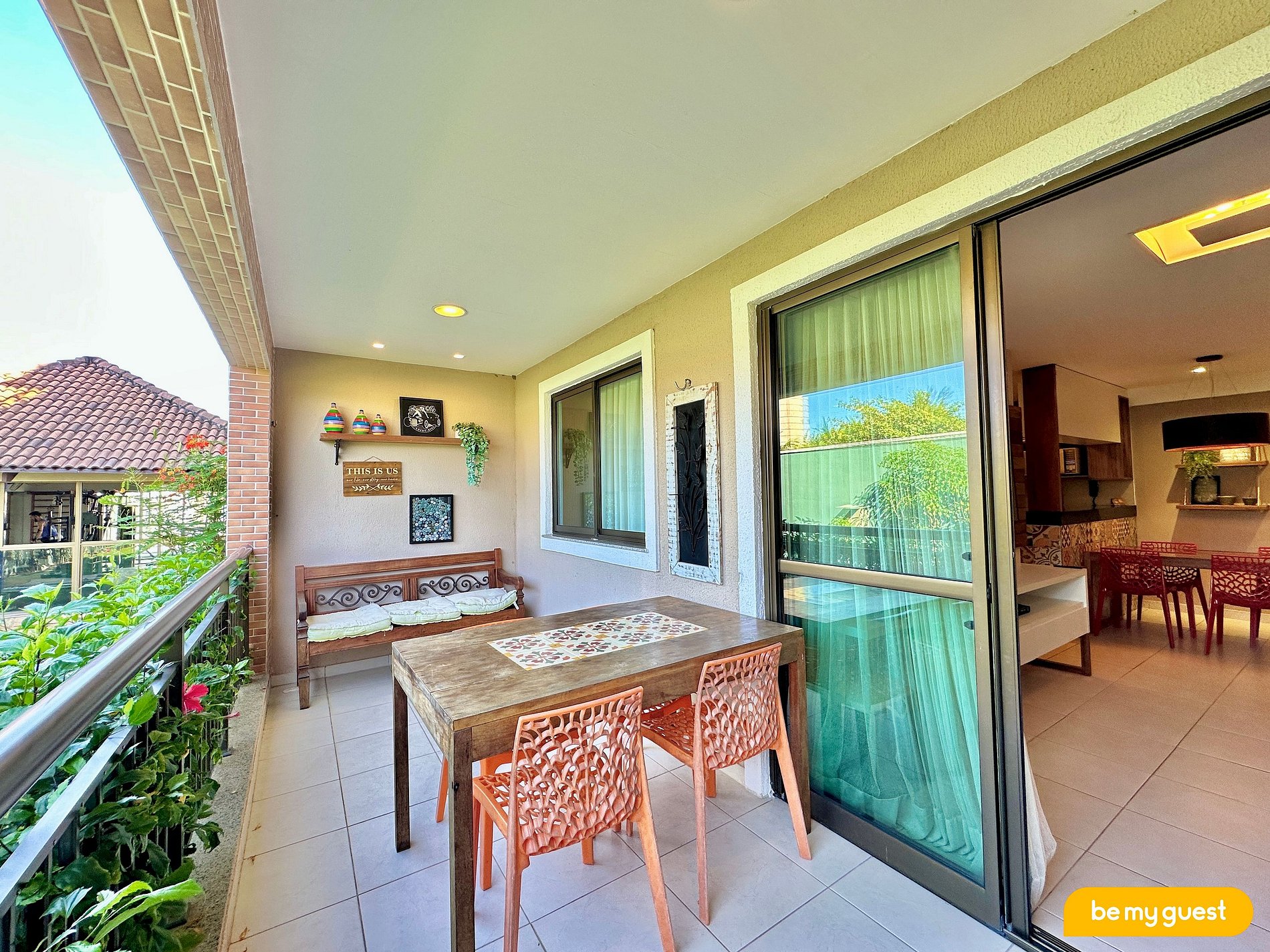 - Varanda ampla com vista para o jardim, ideal para momentos de relaxamento