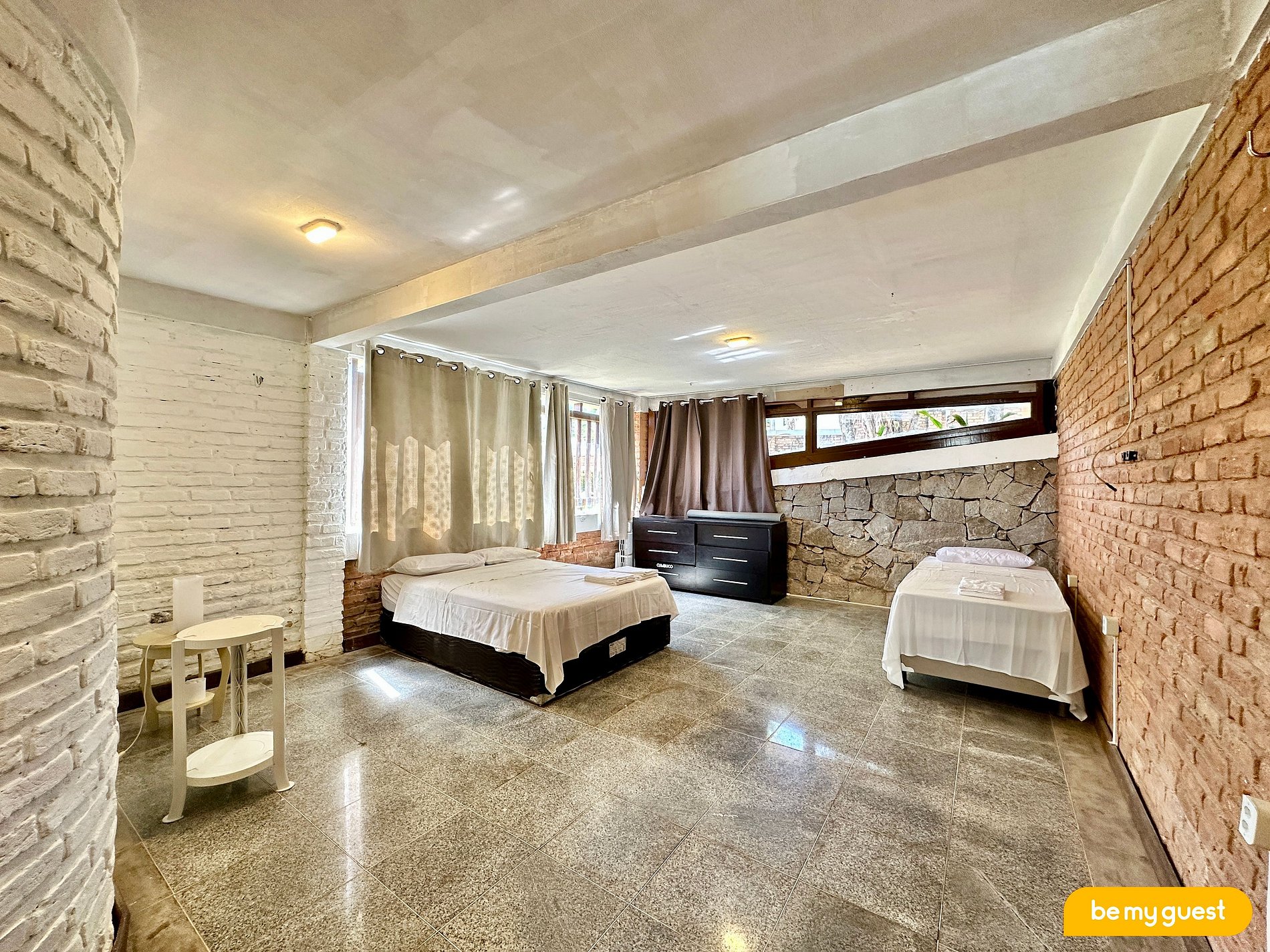- 5 suítes equipadas com ar-condicionado e todas com cama casal.