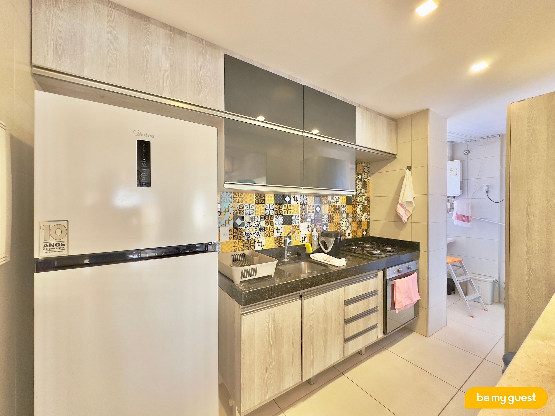 - Cozinha estilo americana com 'gelágua' e com todos os utensilios ideais para sua estadia
