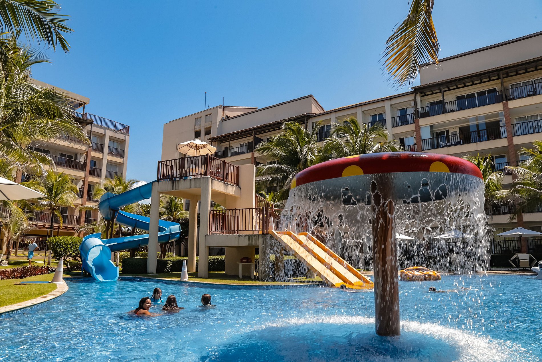 Condomínio totalmente familiar e amigável, com piscina e área de lazer para crianças, até mesmo na área aquática!